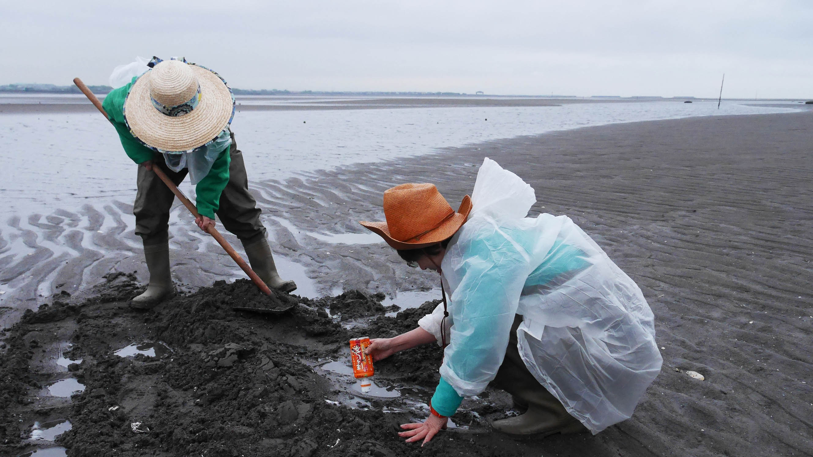 潮干狩りは大人一人500円でザル一杯のアサリ、マテガイは少し多めOK