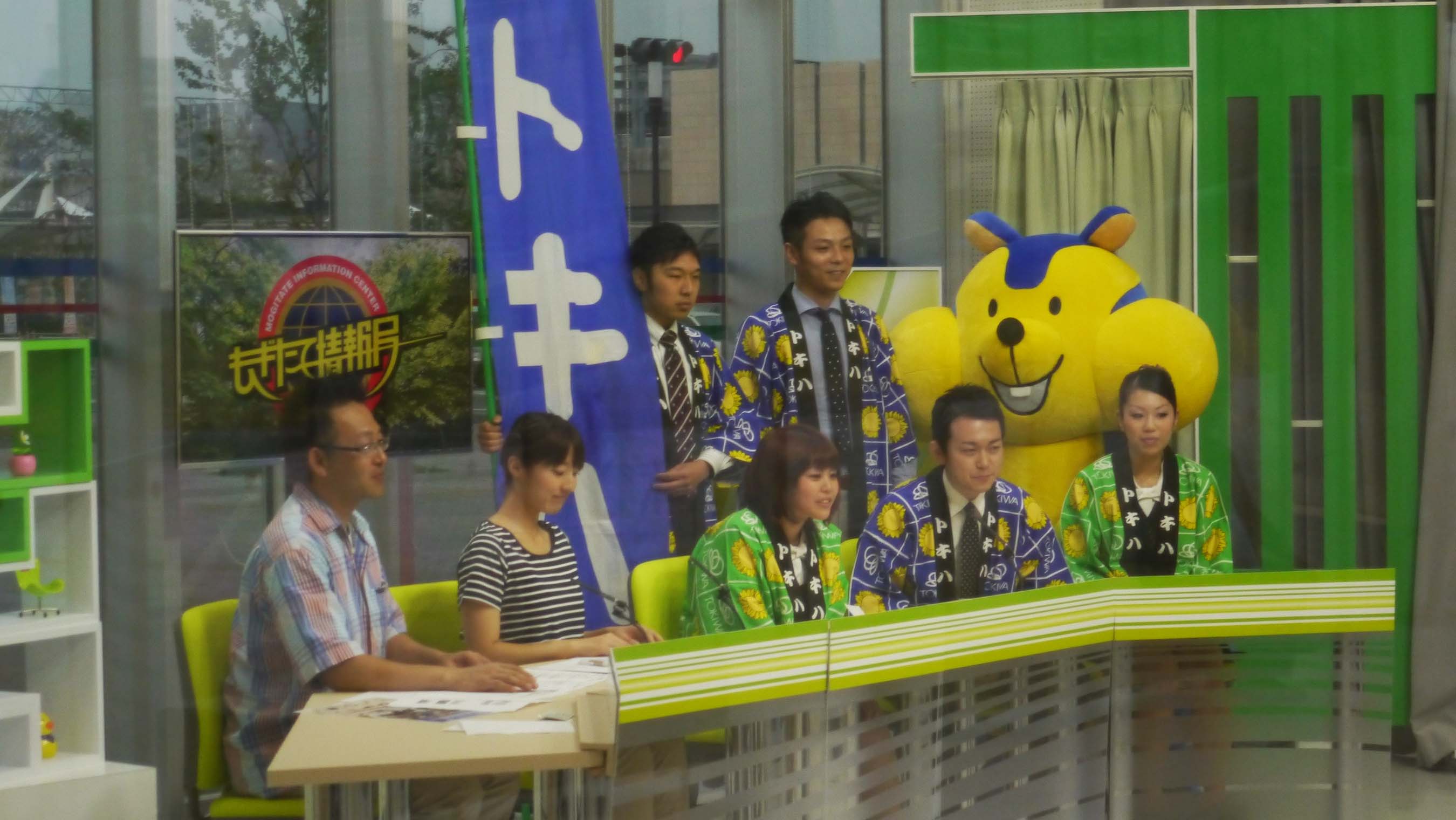 大分市松が丘の本社3Fから、大分駅南口に場所を移しての放送です。
