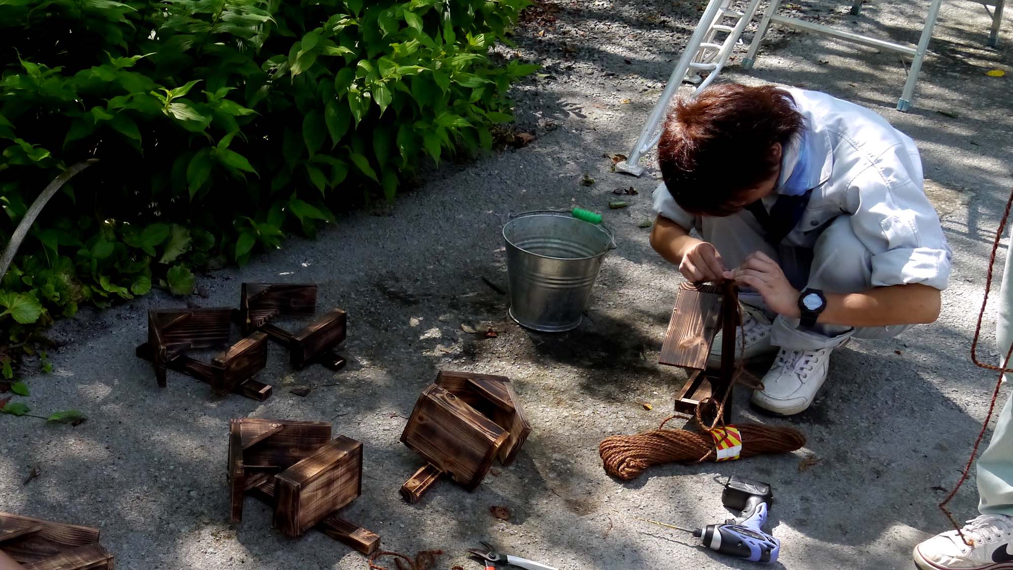 色々とレクチャーしながら、全体の5割ほどを設置、活躍するのは冬からです。それまでは、給餌台の改良も行われるハズです。みなさんお疲れ様。