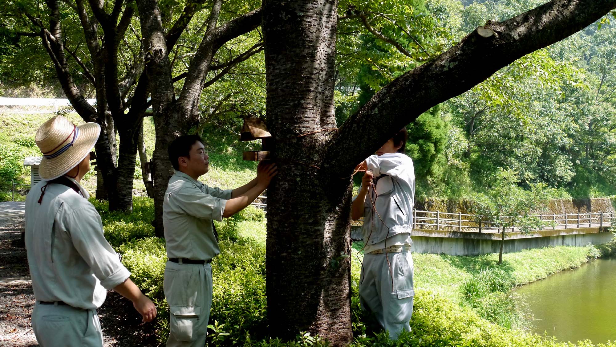 通常は、12月から2月頃にどちらも設置するのですが・・・。特に現時点の巣箱は蜂などが使用することもあるので、設置しない方が良いのです。設置するのに自然の都合ではなく、人間側の都合を優先いしているのが残念でなりません。