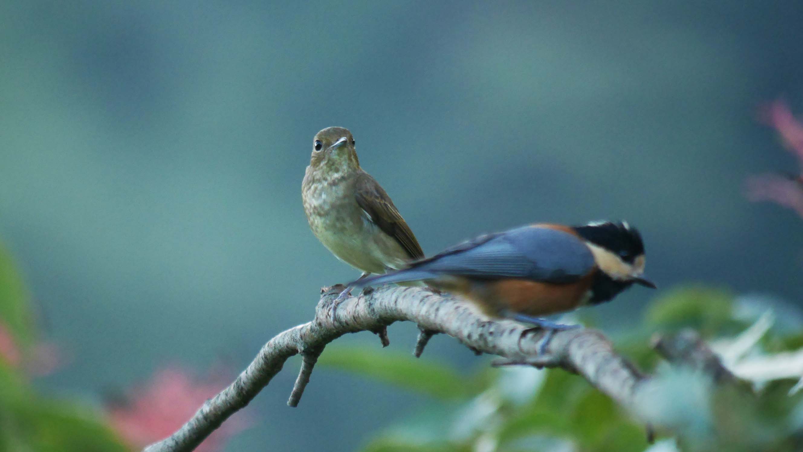 夏鳥のキビタキ♀と留鳥のヤマガラのツーショットは珍しい