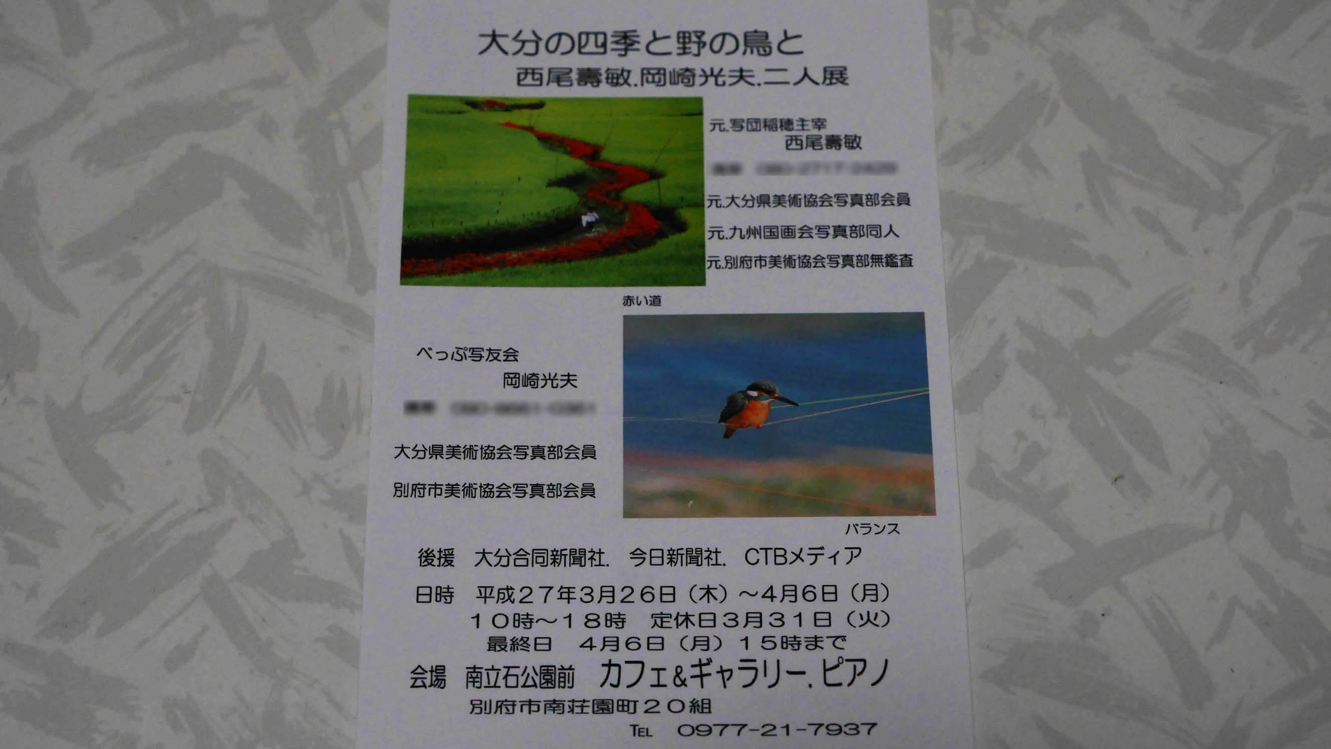 今度は別府の鳥見仲間が写真展を行います。