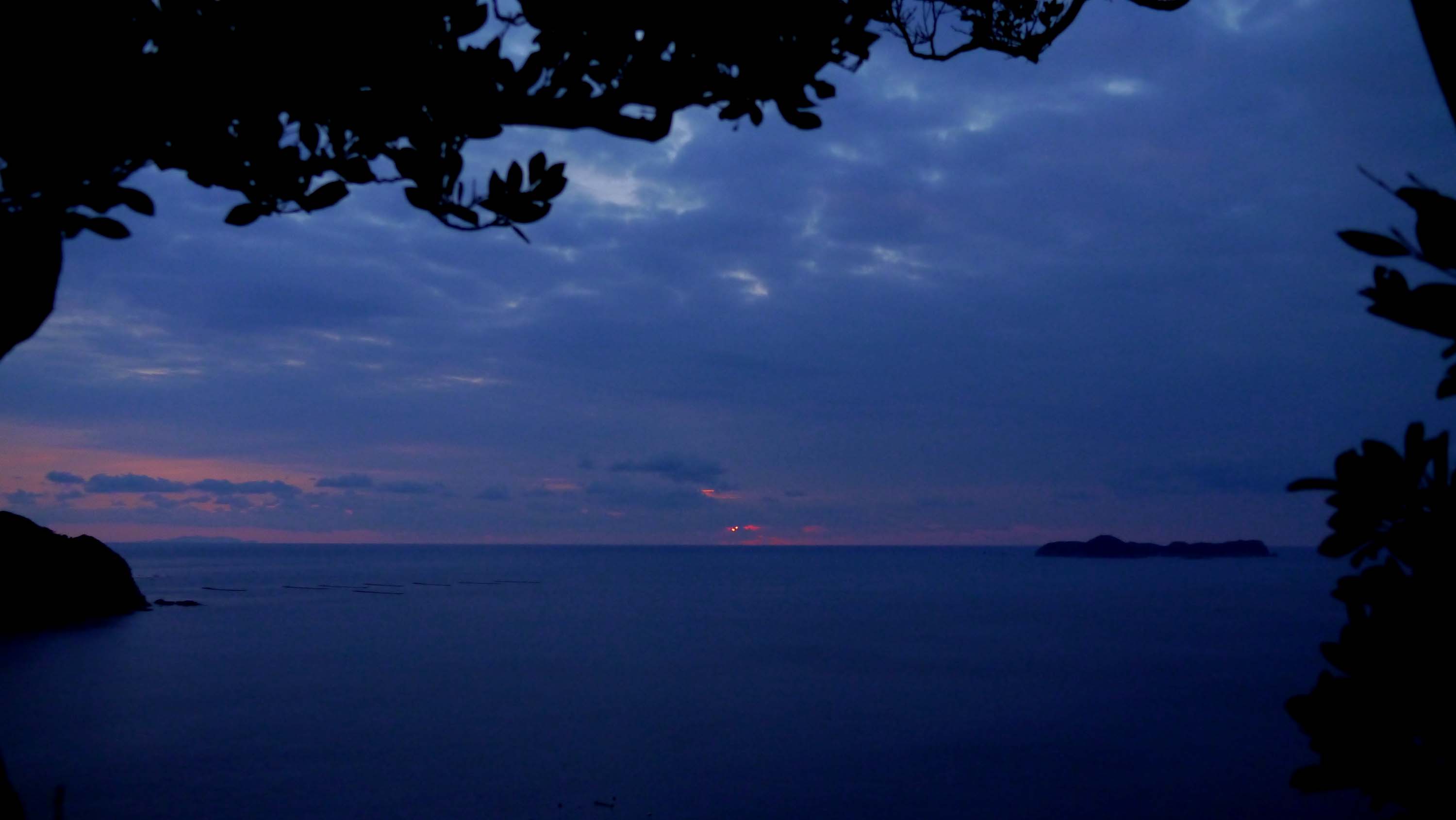 蒲江の名護屋鼻と、深島の中間から朝日は昇ったのですが・・・