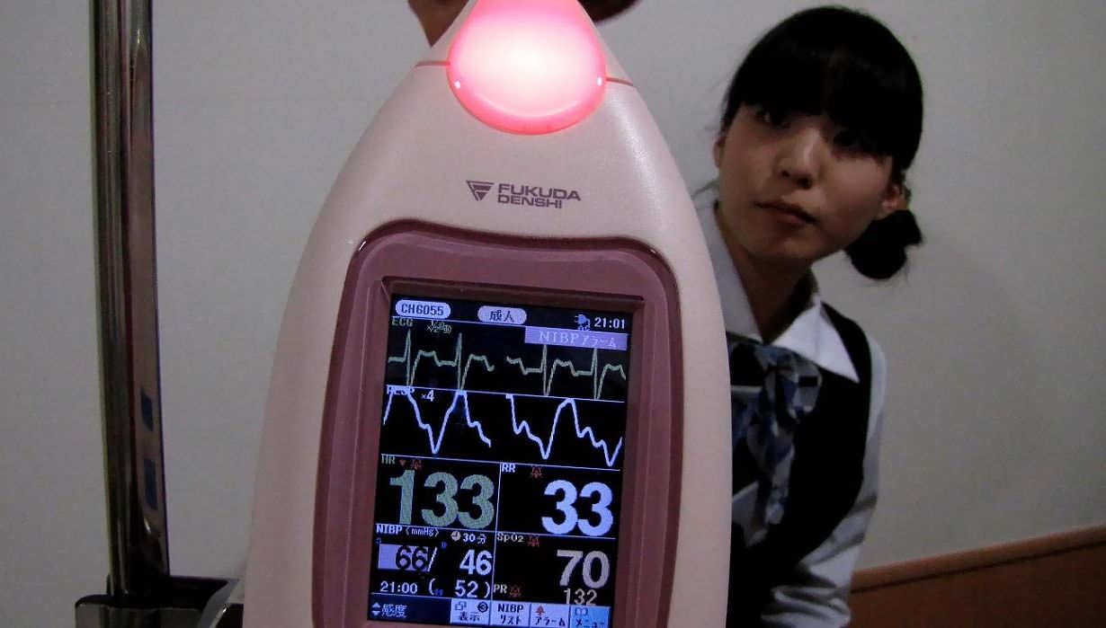 注意して酸素マスクを取り付けた私に
