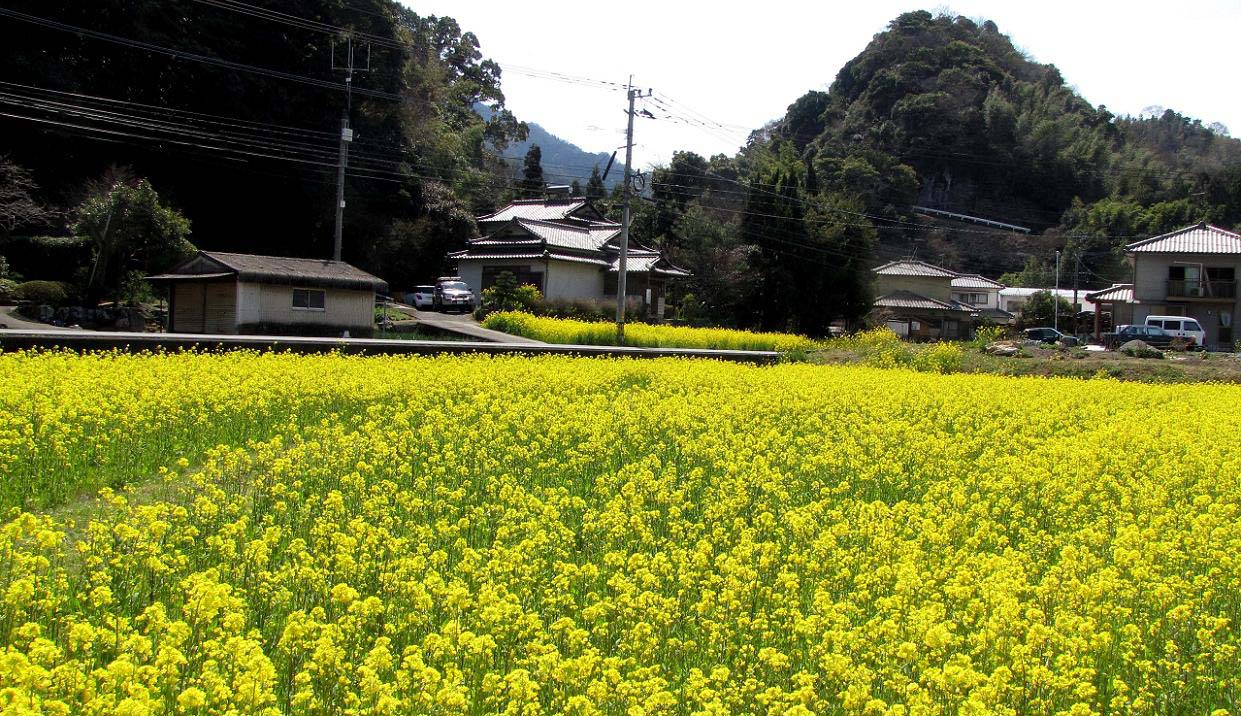 今は実家(中央)を拠点に動く事が多いです。周辺は菜の花が綺麗です