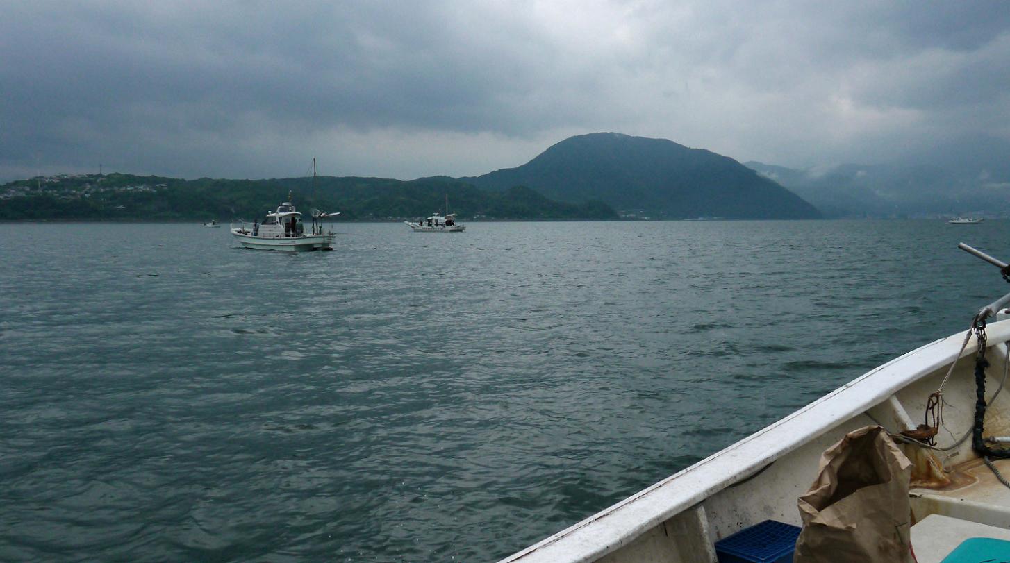 大分港(西大分港&住吉港)から、真北に500m~1kmくらい沖の別府湾の一角、よって風波やうねりはほとんど無く、船酔いのし難い場所です。