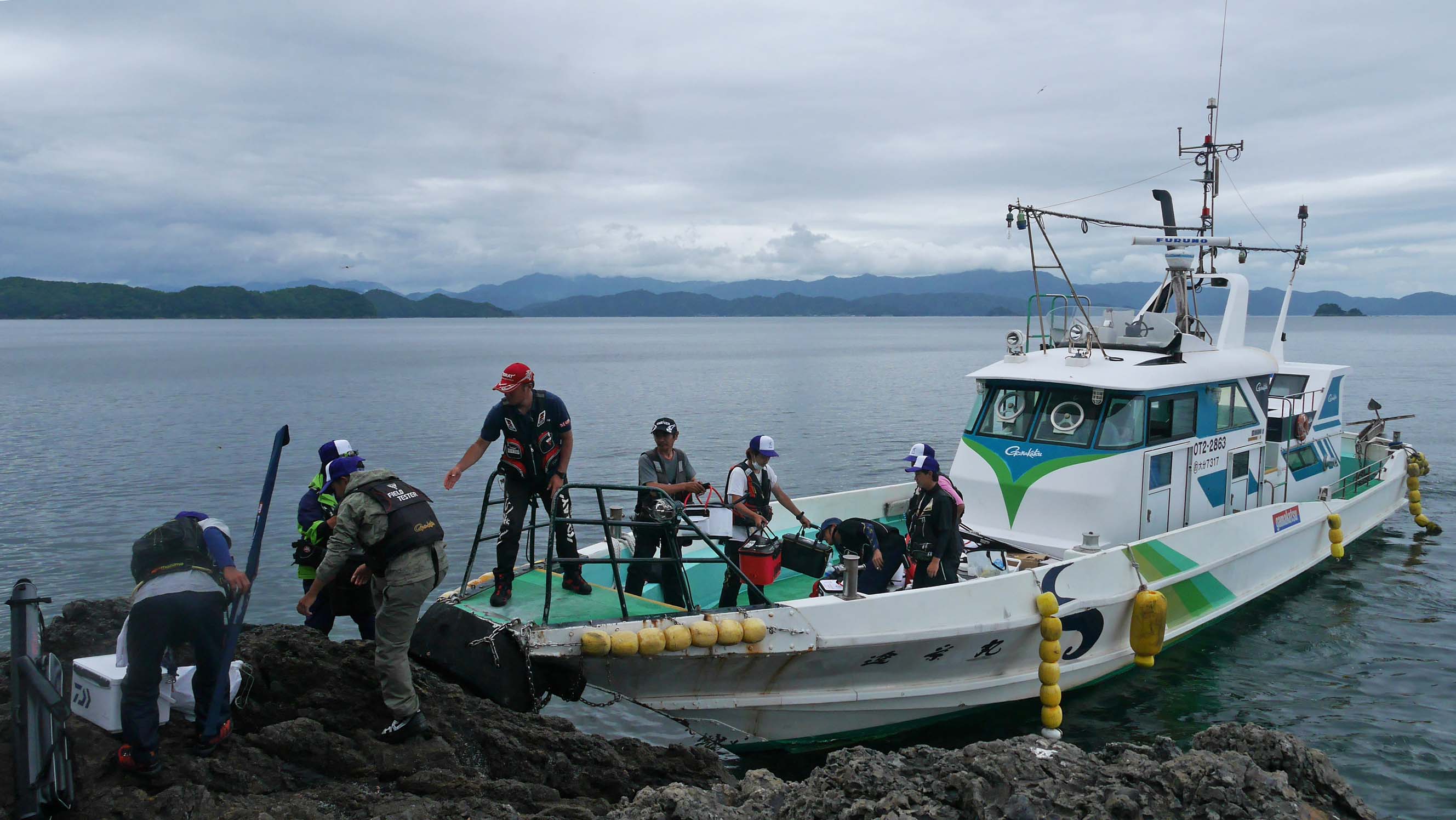 出港は朝の5時。最初は鶴見大島の切れ波止(田ノ浦の一文字)に全員があがり、私のレクチャー後に、それぞれがマキエを作り仕掛けをセットして練習です。
