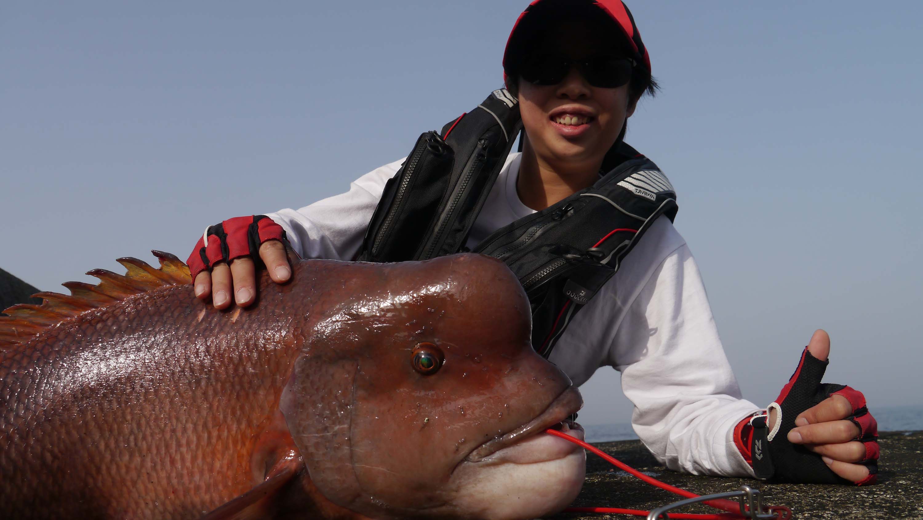 初チャレンジのヘレンさんが、8㎏オーバーのカンダイを釣りました。
