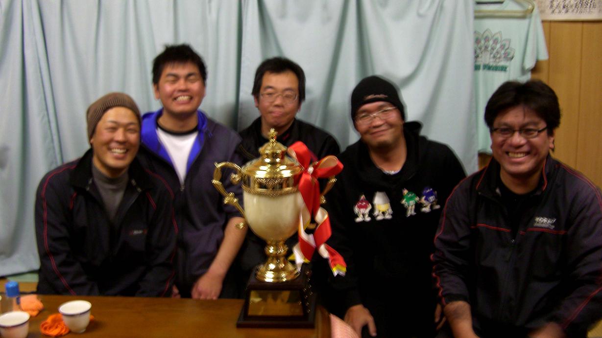 ブレ写真、優勝したYY倶楽部のメンバーです。全員の名前が刻まれます