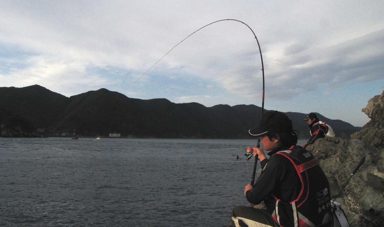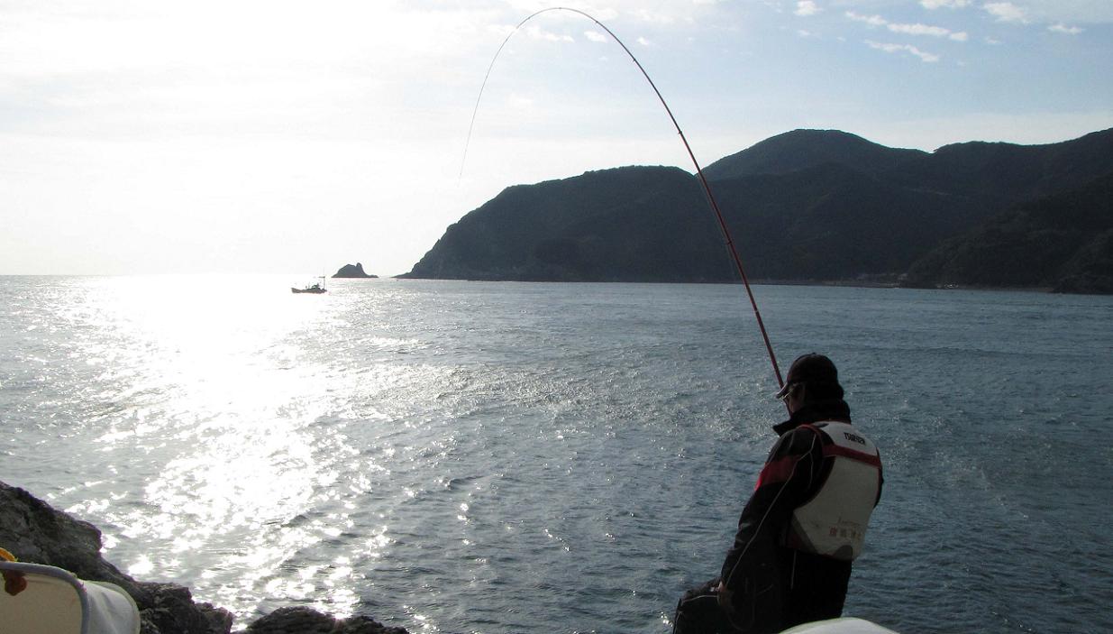 磯釣りデビューの竿曲げだけど、ベテランに近い竿の操作です