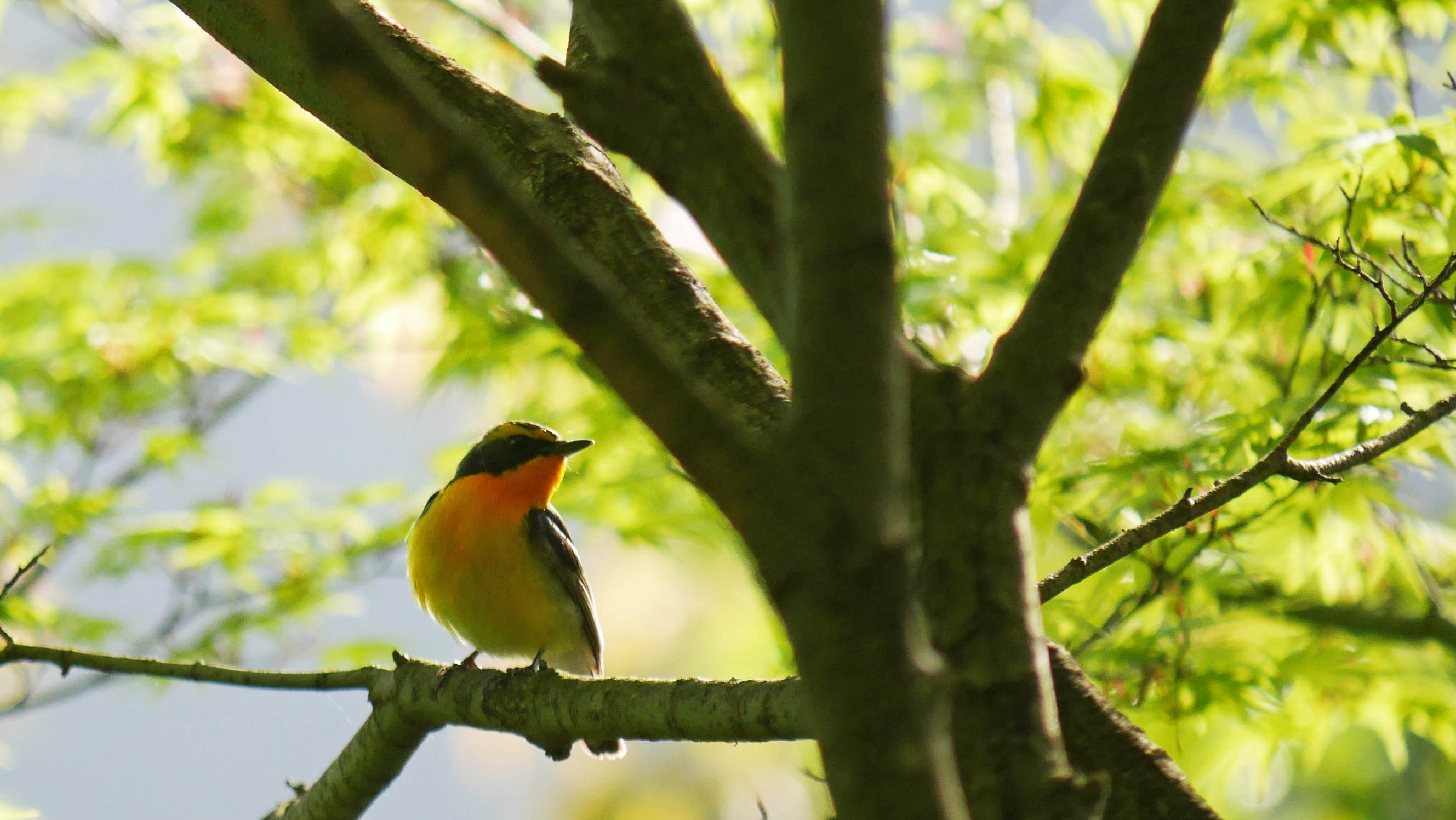 9日に宇曽山で今年初の鳴き声を確認したキビタキ。今日はいつもの坊主山でも初めて鳴き声を確認し、姿も見て証拠写真を撮影することに成功です。