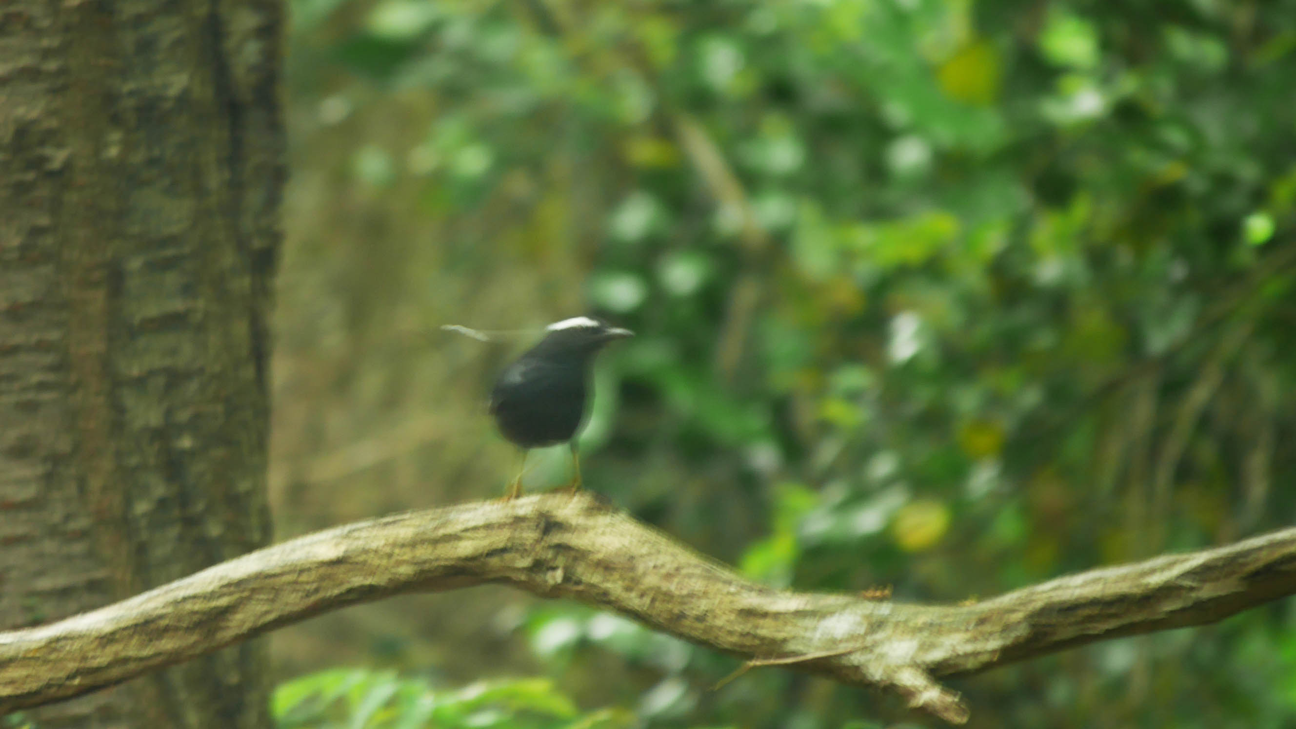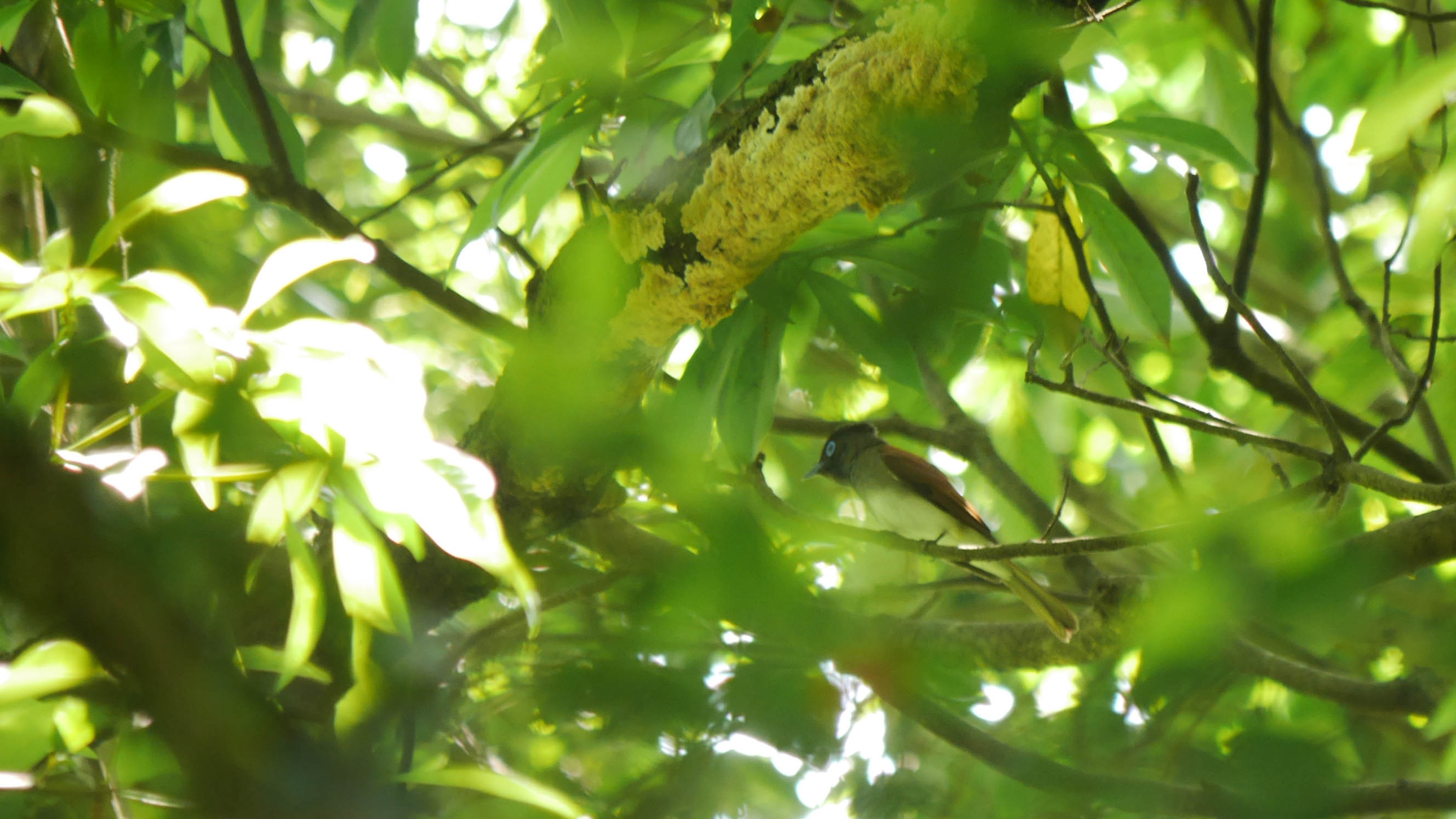 オスの若いサンコウチョウ、でもヤイロチョウの声に気を取られました