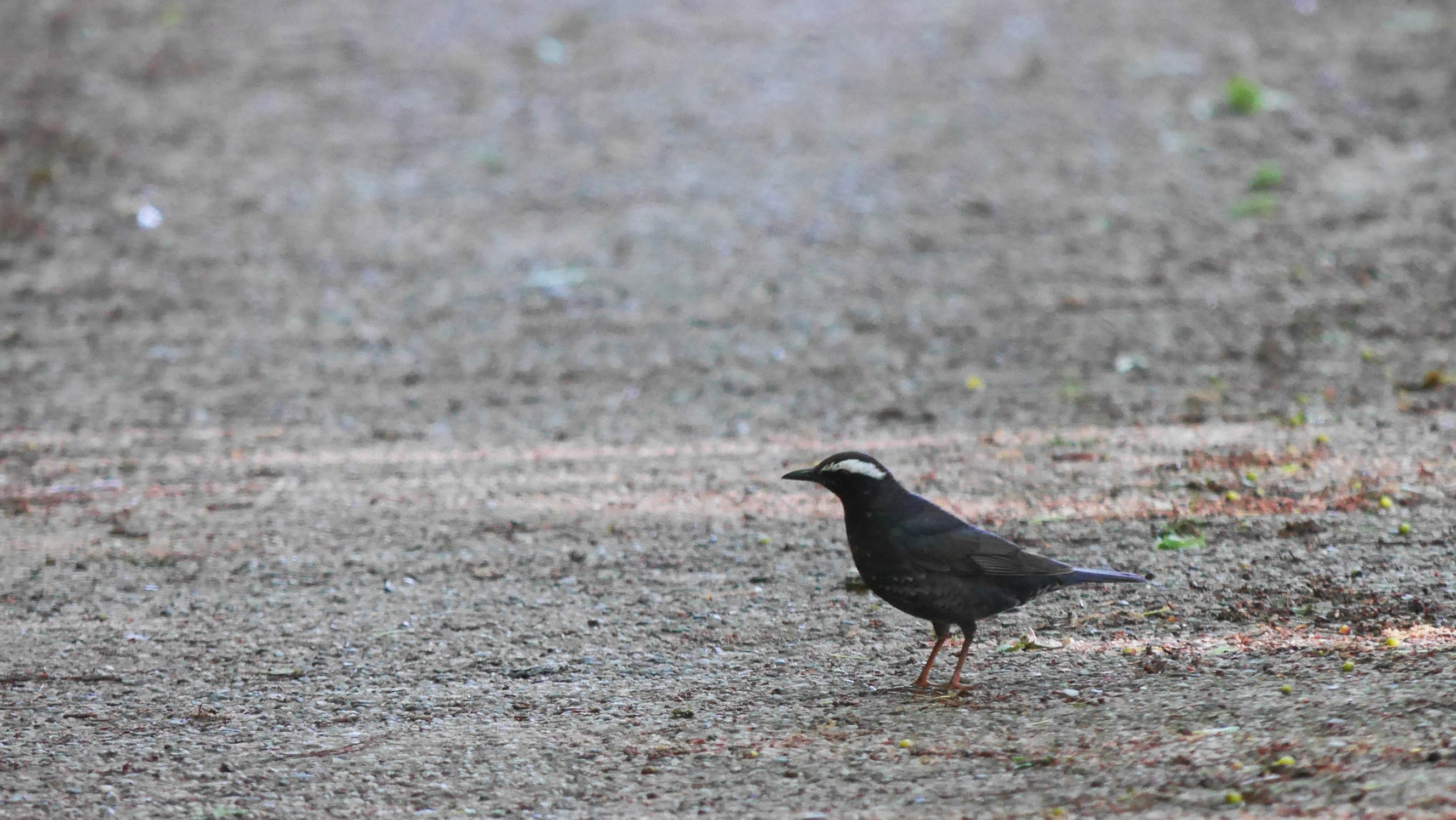 しばらくたってアカハラが再登場、更にもう一羽が20mほど離れた位置に登場。