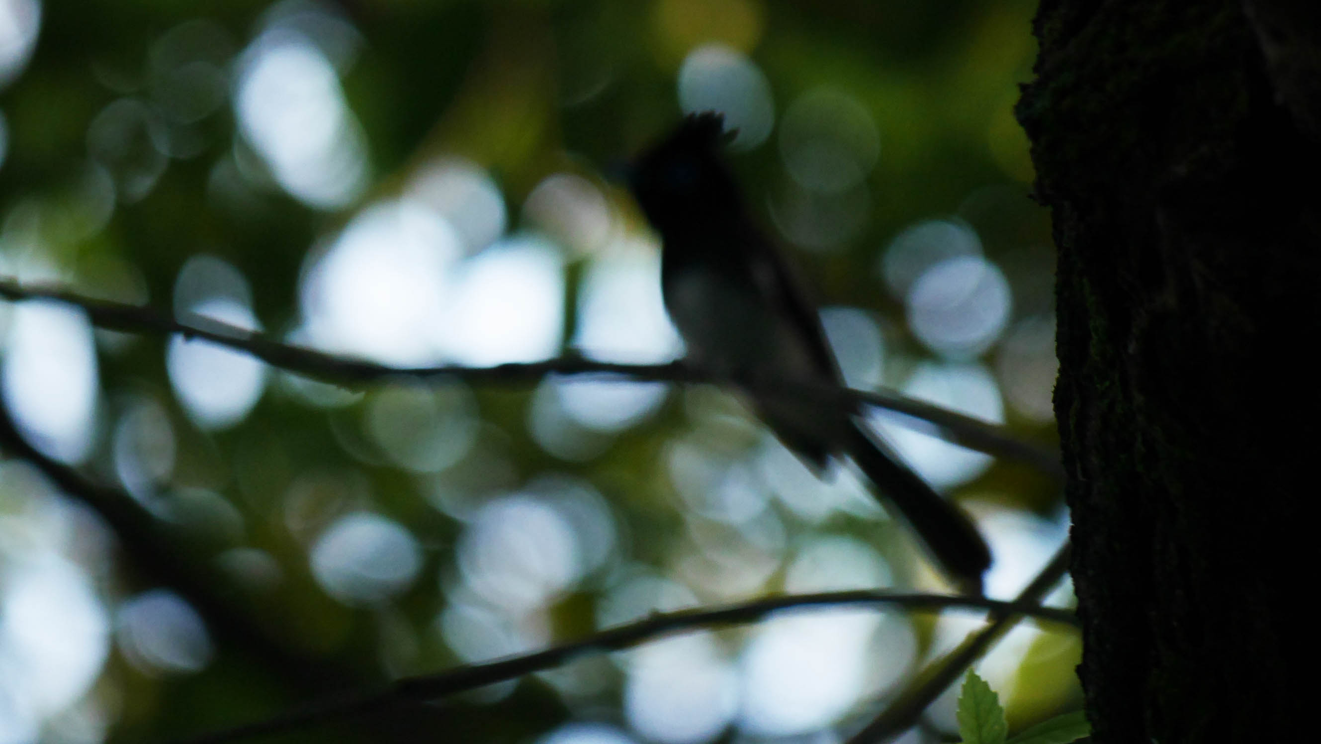 近くにサンコウチョウの若オスが来たので撮影し始めた直後・・・