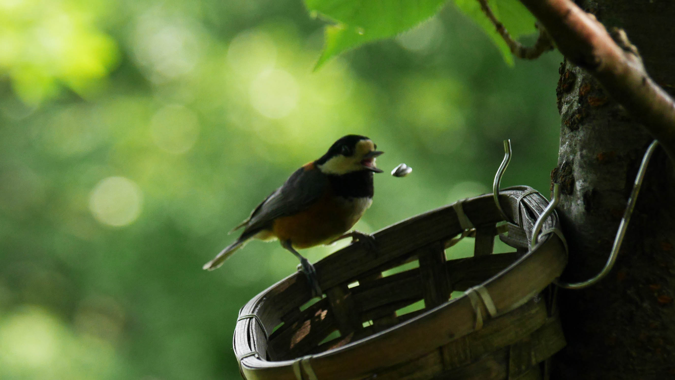おまけに新緑の葉っぱが小鳥を覆い隠してしまいます。