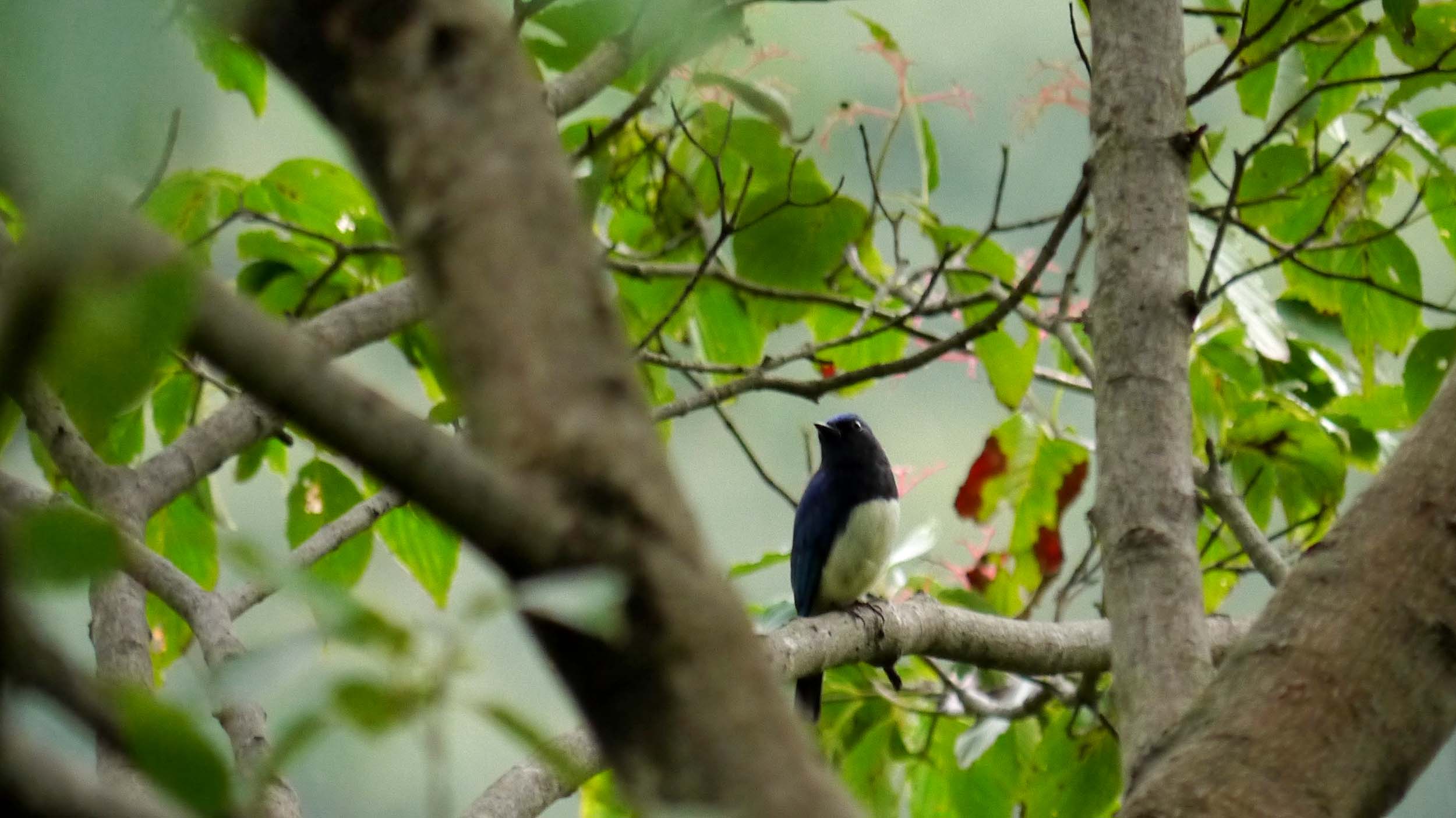 夏鳥のオオルリやキビタキなどが、クマノミズキやアカメガシワの実を啄みながら、南の国へと移動中です。