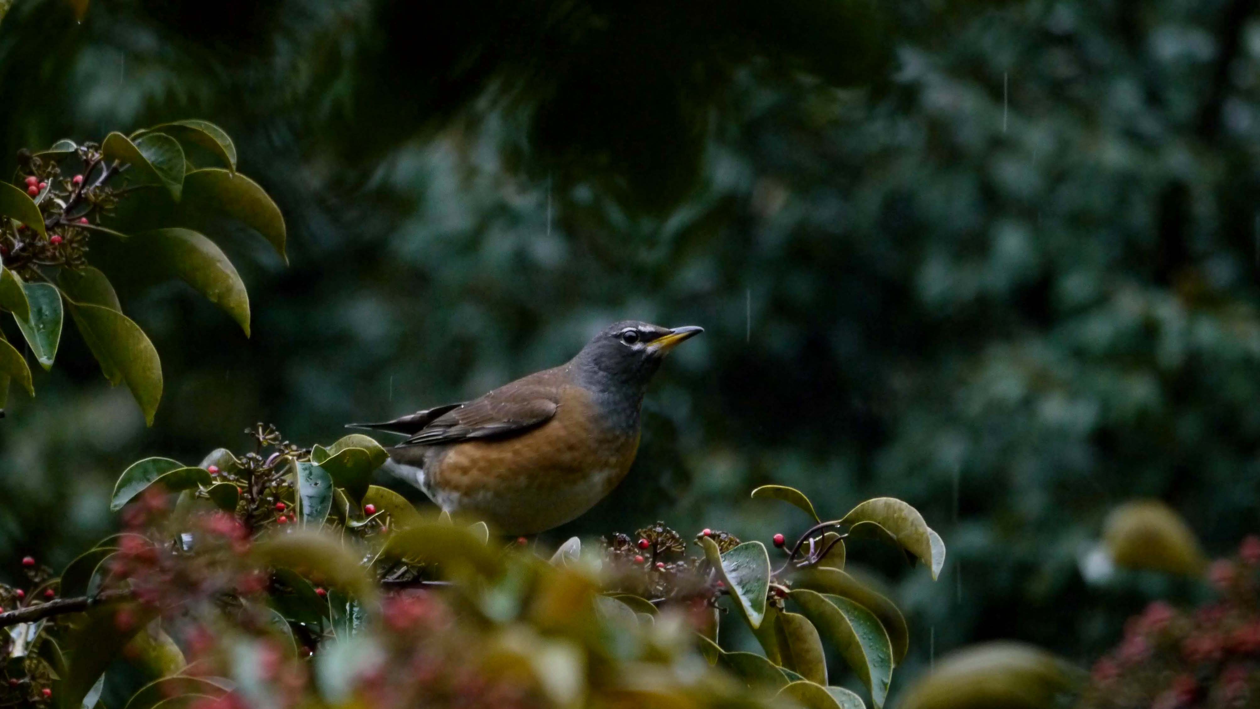 水場は朝夕が狙い目?雨降りでは遠慮している感じでした。
