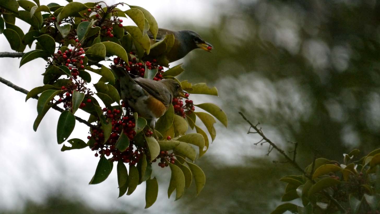 マミチャジナイ・アカハラ・シロハラを入れると50羽くらい?