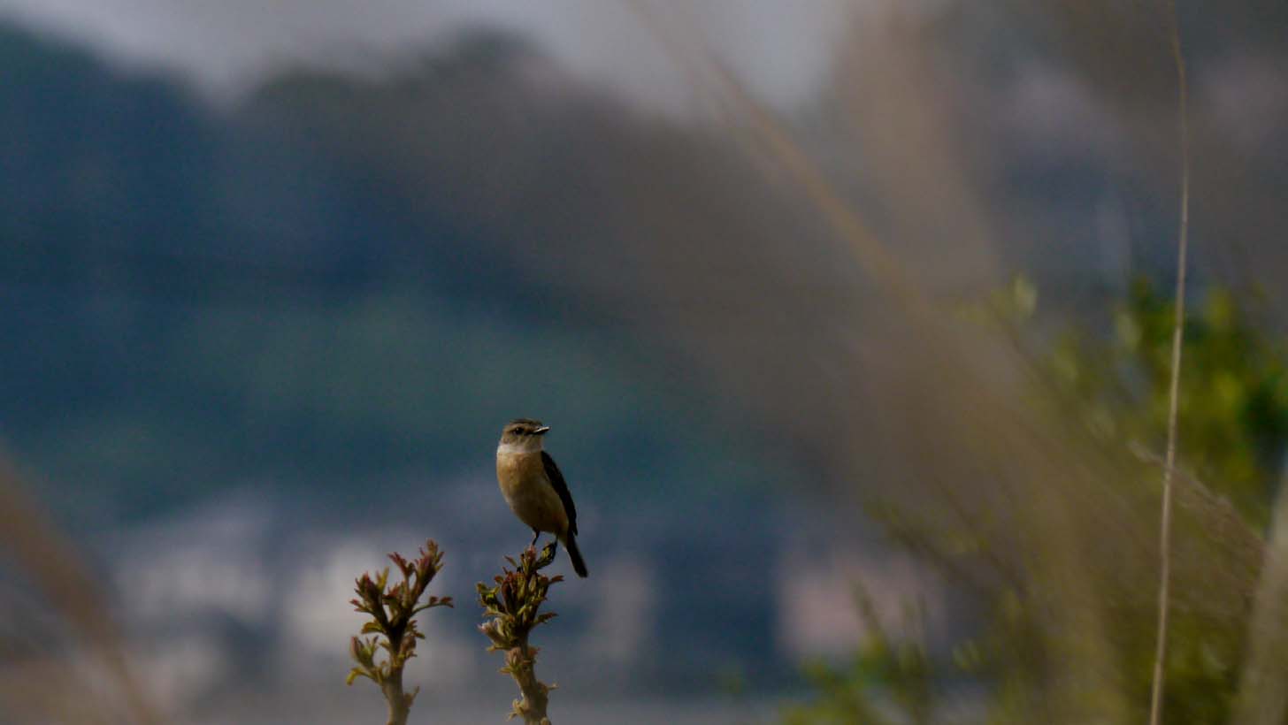大分川沿いに、旅の途中で立ち寄っているノビタキのメス。