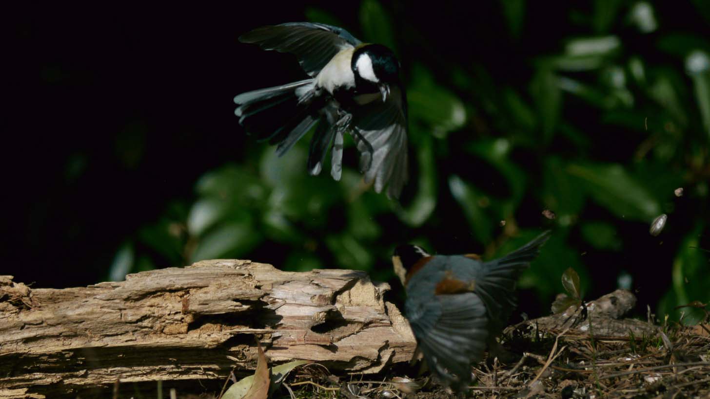 取っ組み合いが終わった後は、ヤマガラが逃げました。