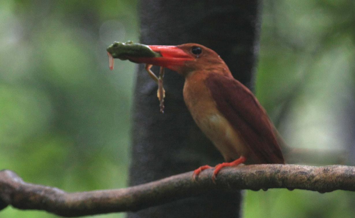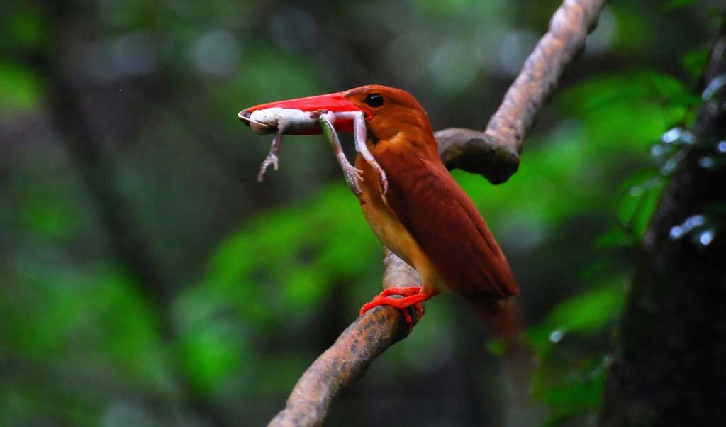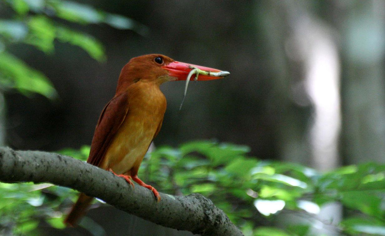 アカショウビンは数が少ないので、先ず見る事が出来ません。そのアカショウビンが大分の“県民の森”で繁殖に成功なのです。