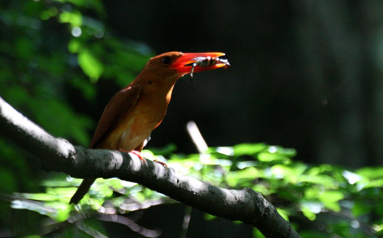渓流沿いでじっとしているアカショウビンに出会う