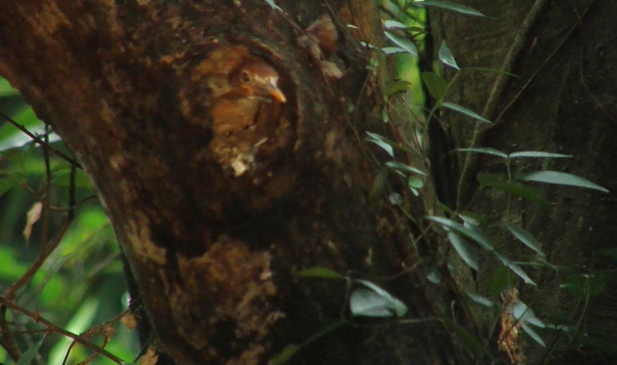 巣穴から覗いた最初の雛、このあと一気に飛び立ちました