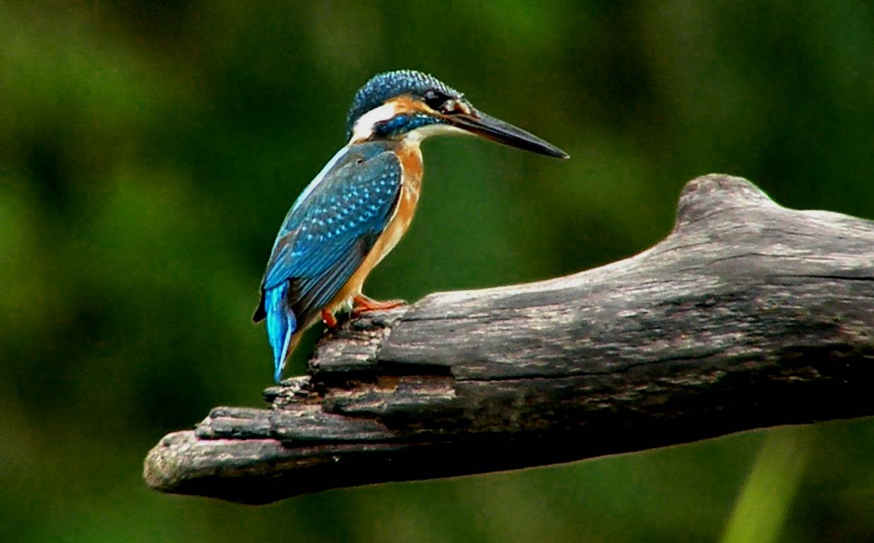 写真は基地上流の溜りで狩りをする、カワセミの若いオスです。