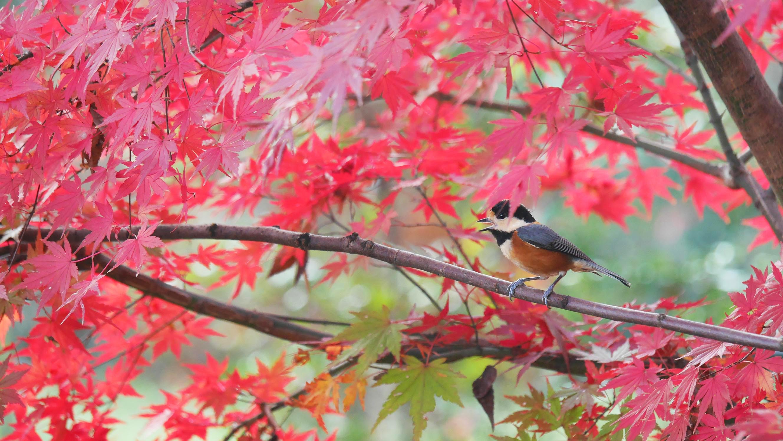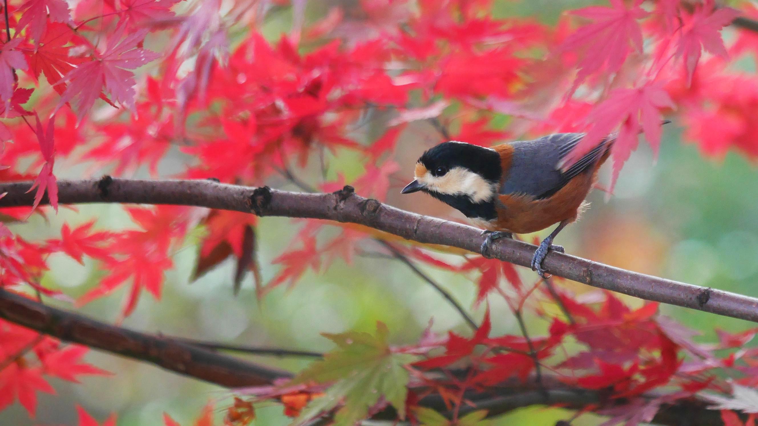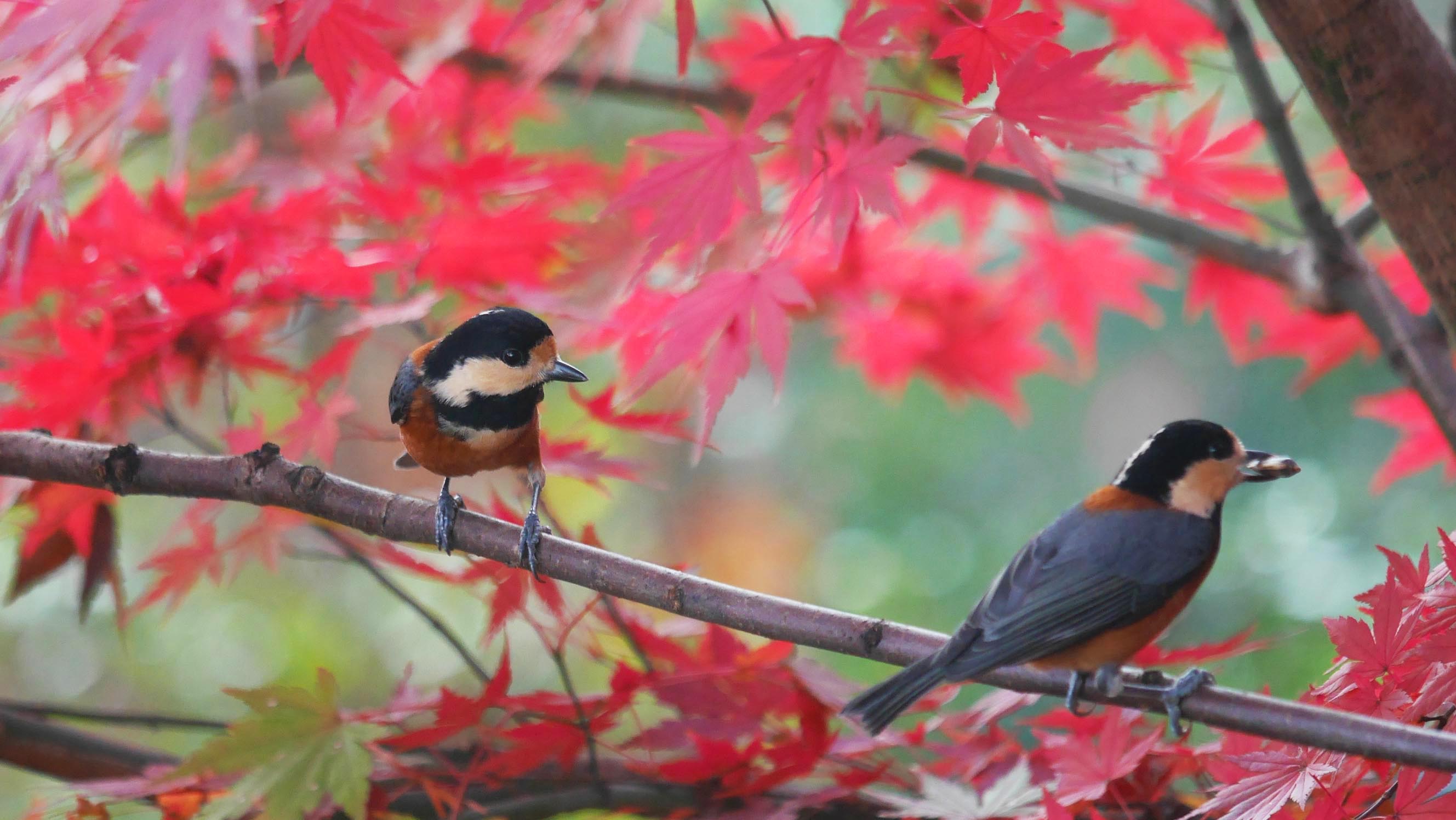 今の時期は地面に降りて昆虫や木の実を食べる事が多い