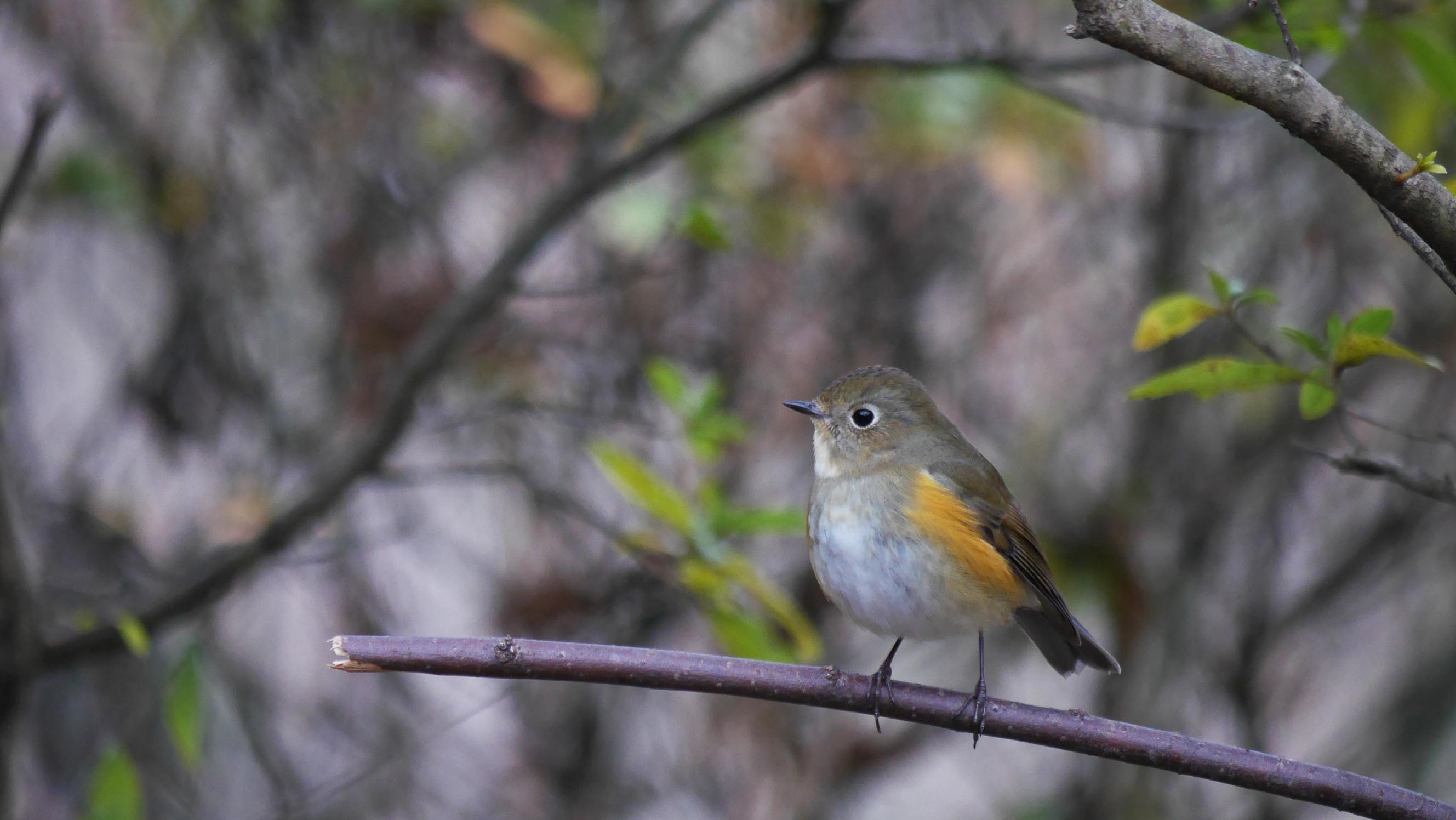 その小鳥はルリビタキのメスでした。住人の小鳥たちが飛び交っているので、様子を確認するためにやってきたと判断。彼女もまた近くに縄張りを持っているのでしょうね。