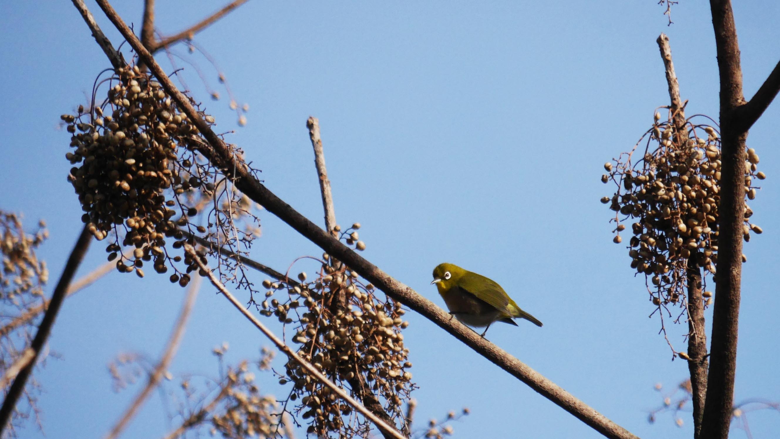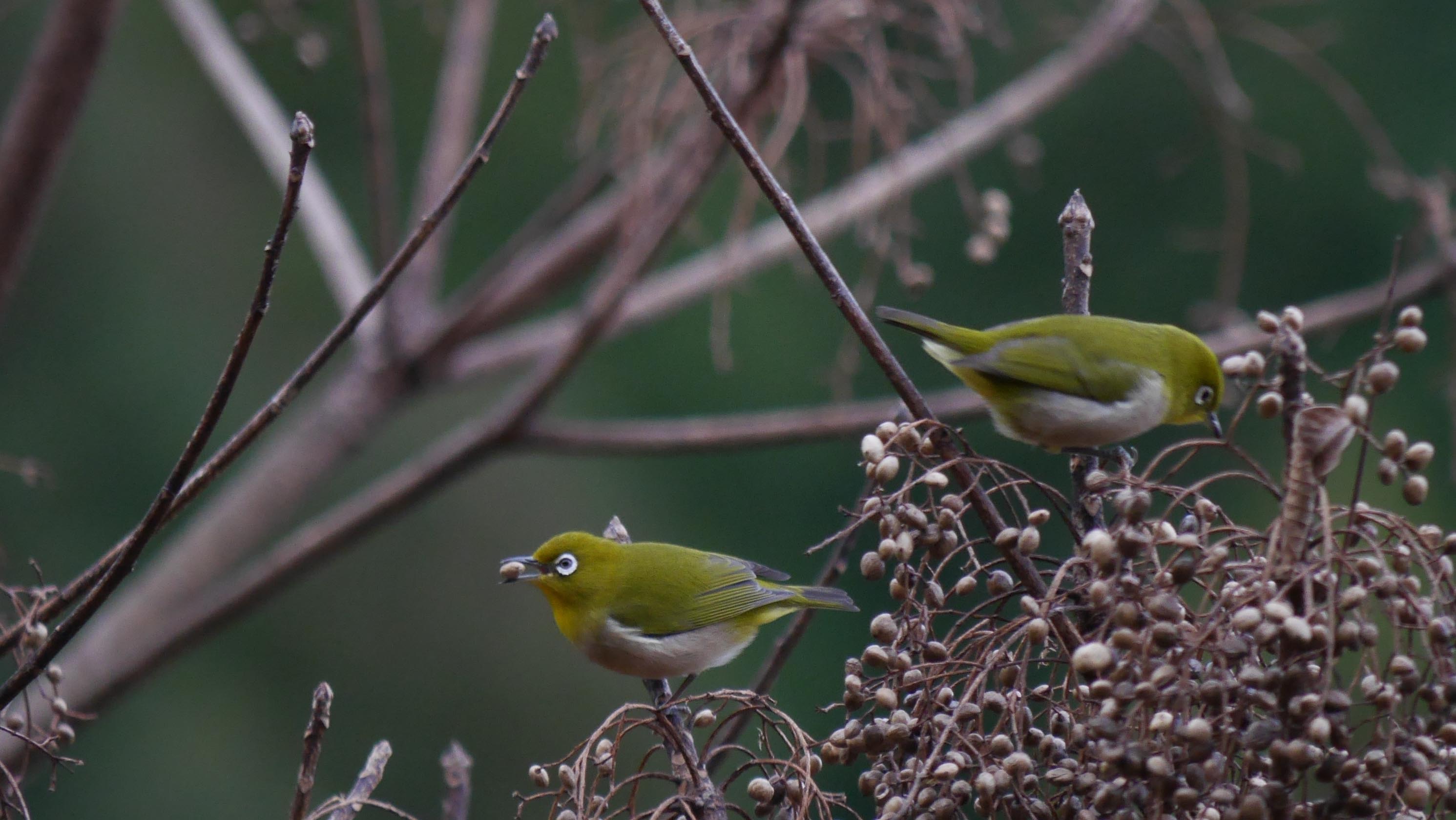 ハゼの実を食べに来る野鳥の出入りが盛んになっています。