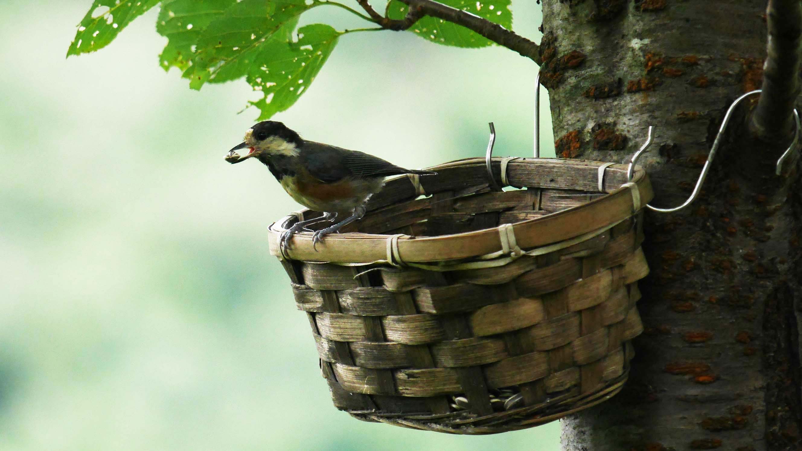 ヤマガラハウスの餌場に来ている小鳥達。