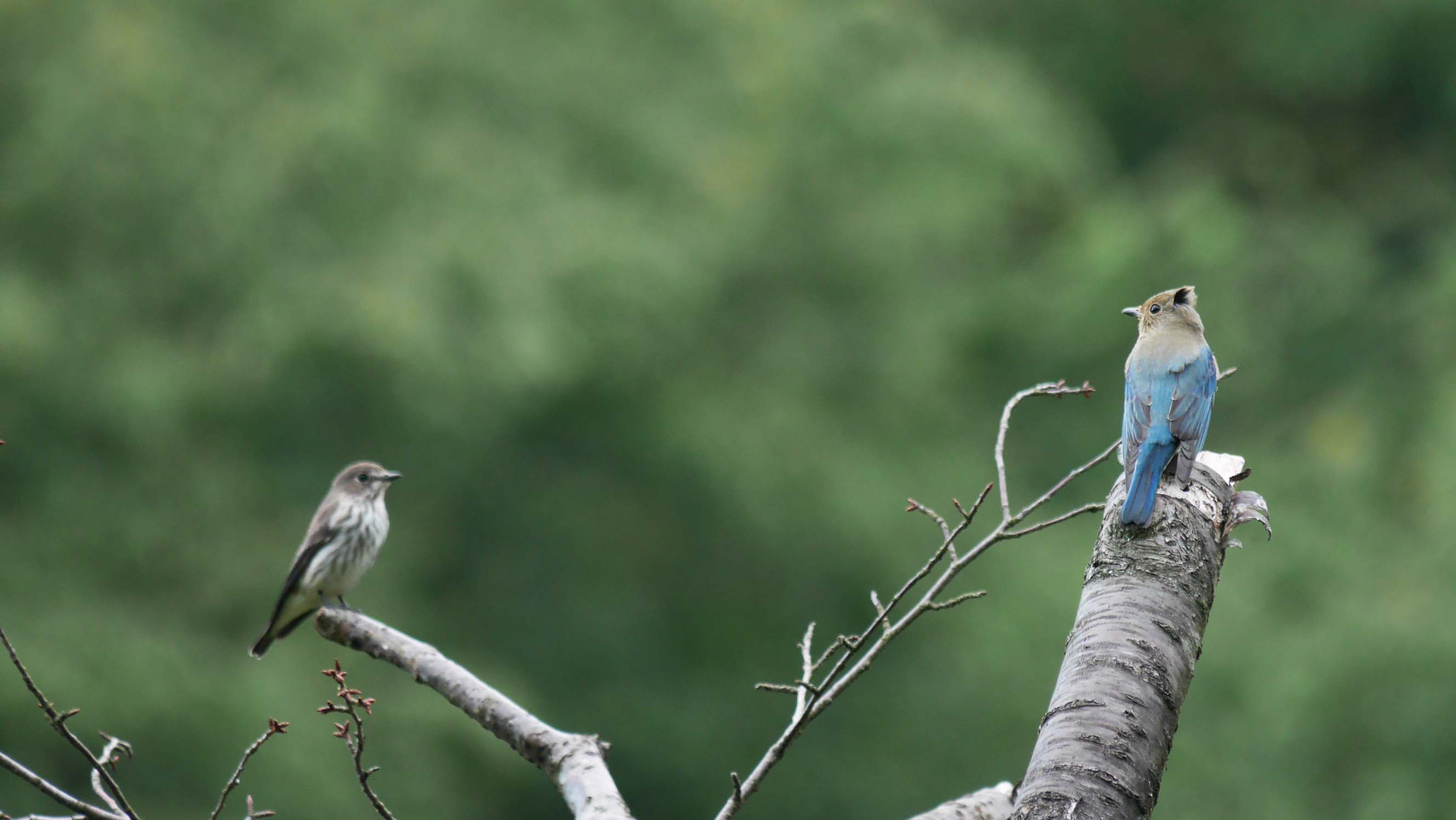 オオルリとエゾビタキ・・・この後エゾビタキはオオルリに追われました