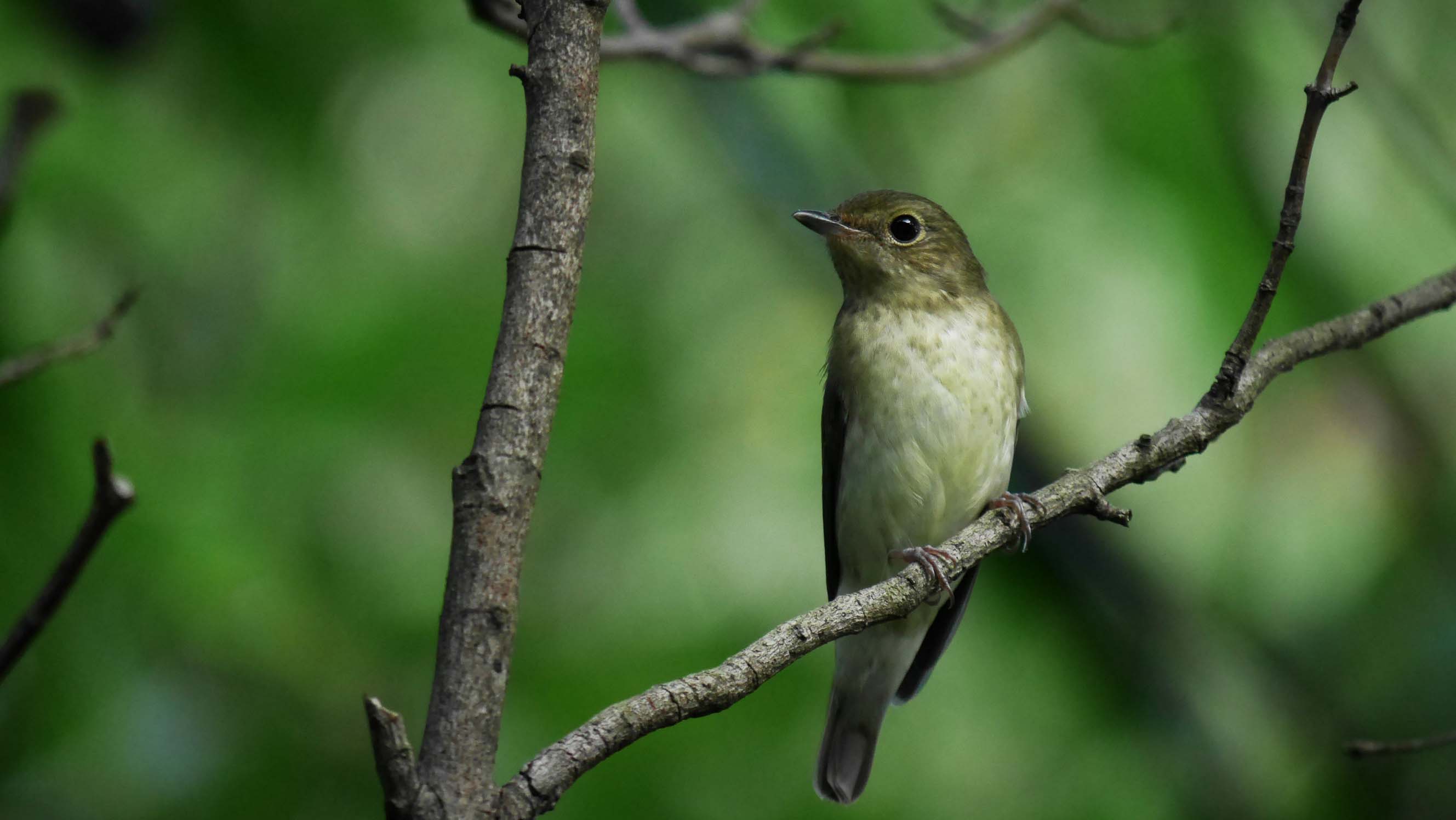 こちらは近くに来てくれたメスのキビタキです