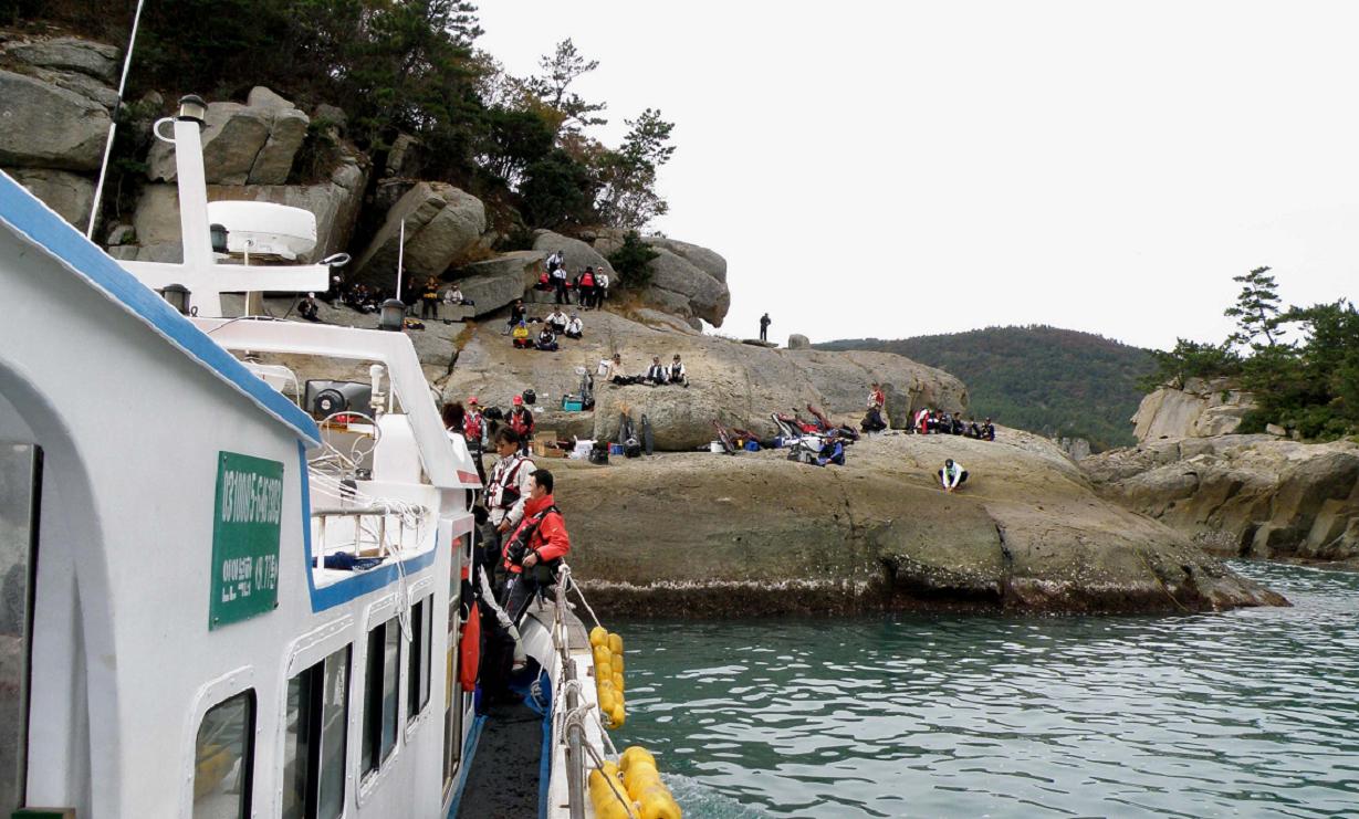開催地が韓国の麗水(ヨス)なので、一番近い釜山へと、10月15日の一便船のビートル?に乗って博多港から出発です。メンバーは田中釣心名人と、釣研テスターの行徳秀美君、釣研社員のミスターM君と私です。