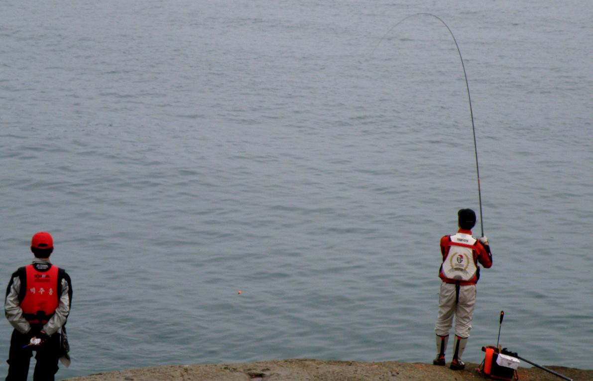 ちなみに韓国の選手の大部分は、磯竿の1~1.5号クラス・道糸は2~2.5号クラス・ハリスは1.2号クラス・ウキは1~2号クラス・水中ウキを併用して、遠投主体の半遊動釣法です。これで根掛かりしたら、竿をあおってハリスをブチ切って仕掛けを作り直します。