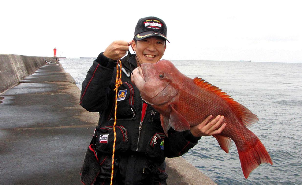 今年の初秋、がまかつからの依頼で、米水津の磯で高里君に1000釣法を教えました。一ヵ月後にシマノジャパンカップのセミファイナルが米水津で開催されるからです。その時に、彼からカンダイを釣りたい事を聞いていました。