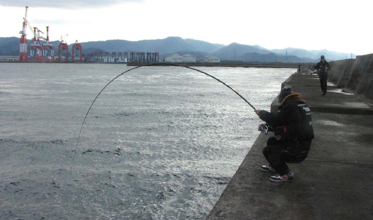 カンダイ釣りの魅力は、あの強い引きとのガチンコ勝負にあります。イシダイ釣りに似ていて、糸を送ったりしてヤリトリをすると捕れる確率が下がるから、力対力の目一杯の勝負をするので面白いのです。