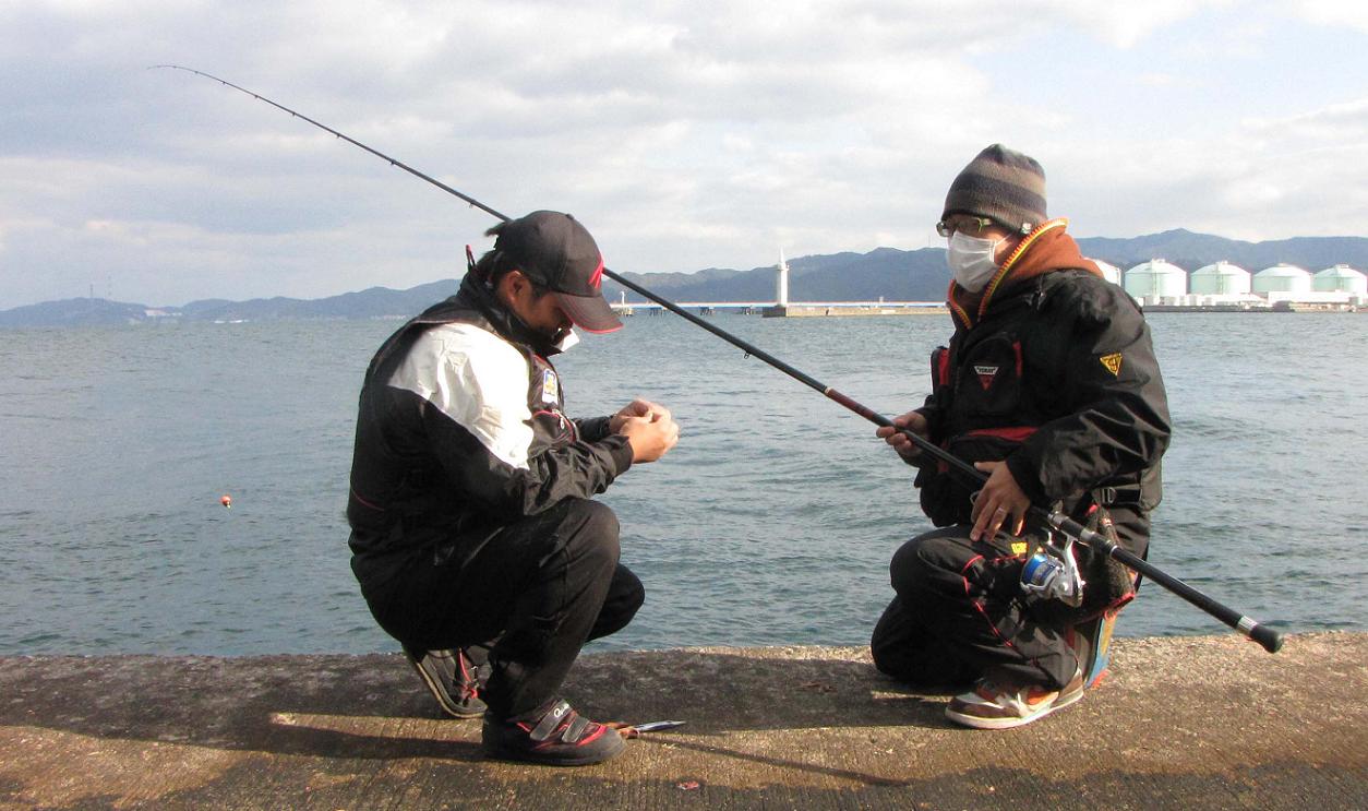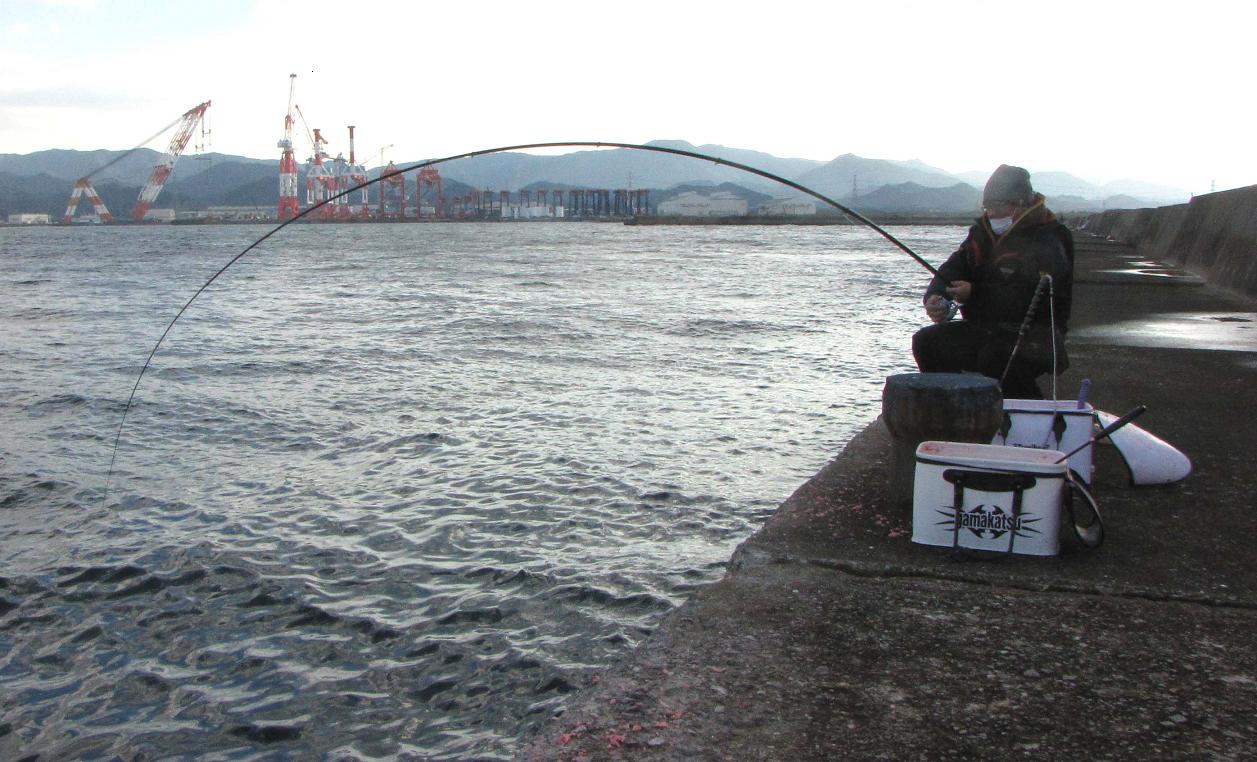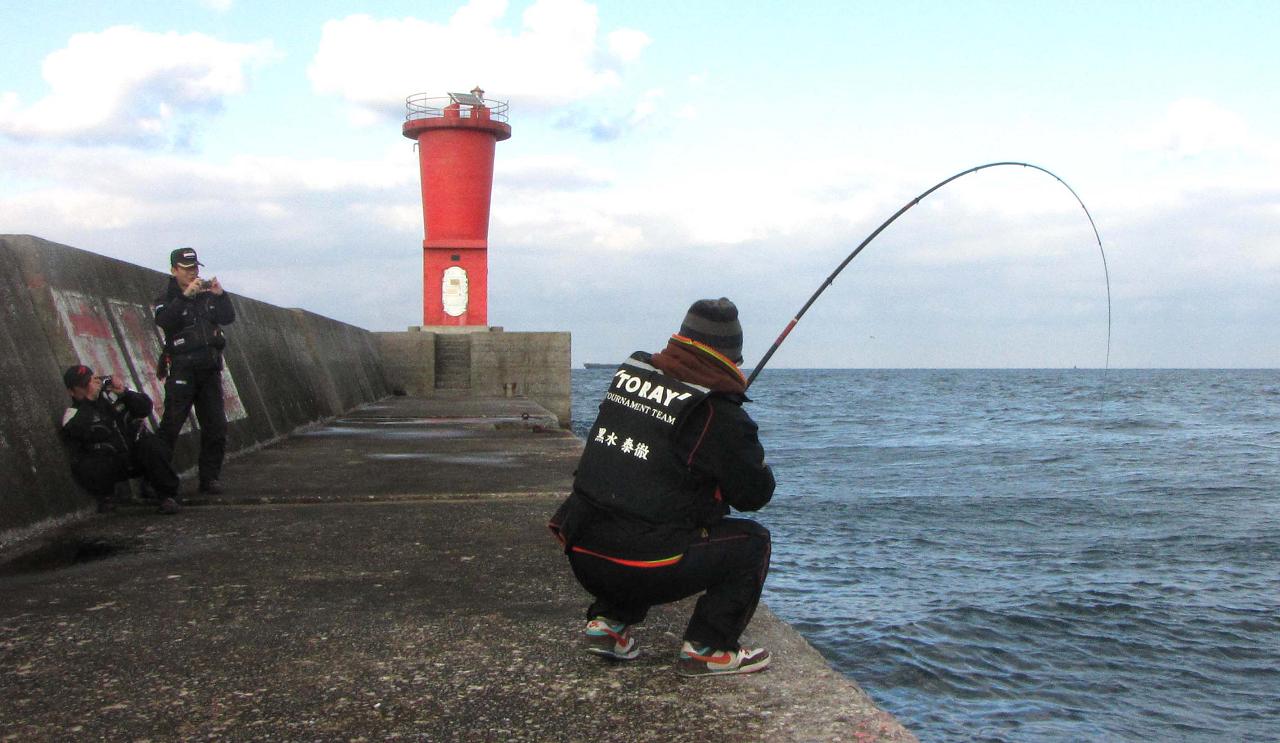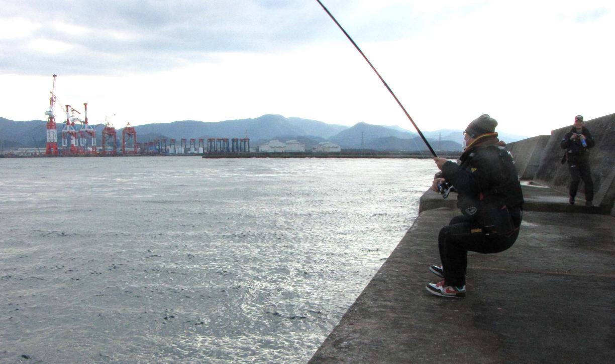 そのセミファイナル数日前に、高里君が再び試し釣りで大分に来た時、あいにく私は韓国のコリアオープンでご一緒出来ず、前回同行していた黒ちゃんに代役をお願いしました。意気投合した二人が今回のカンダイ釣りの計画を練って、一文字防波堤のカンダイチャレンジとなった訳です。