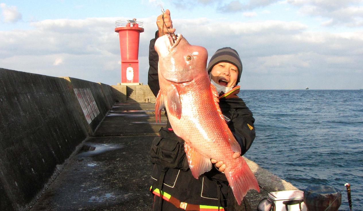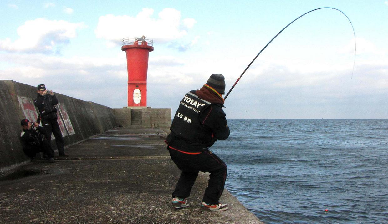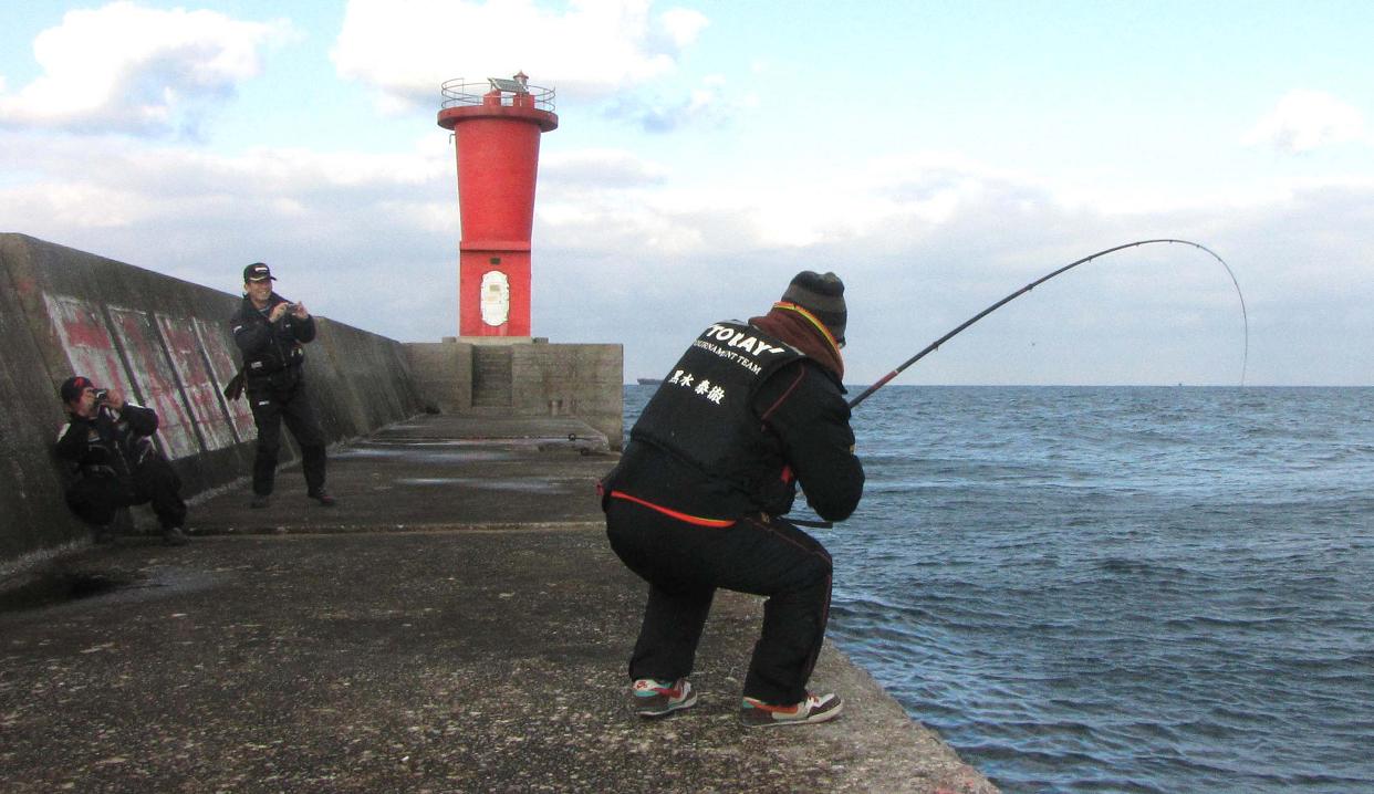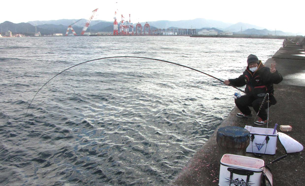 そのセミファイナル数日前に、高里君が再び試し釣りで大分に来た時、あいにく私は韓国のコリアオープンでご一緒出来ず、前回同行していた黒ちゃんに代役をお願いしました。意気投合した二人が今回のカンダイ釣りの計画を練って、一文字防波堤のカンダイチャレンジとなった訳です。
