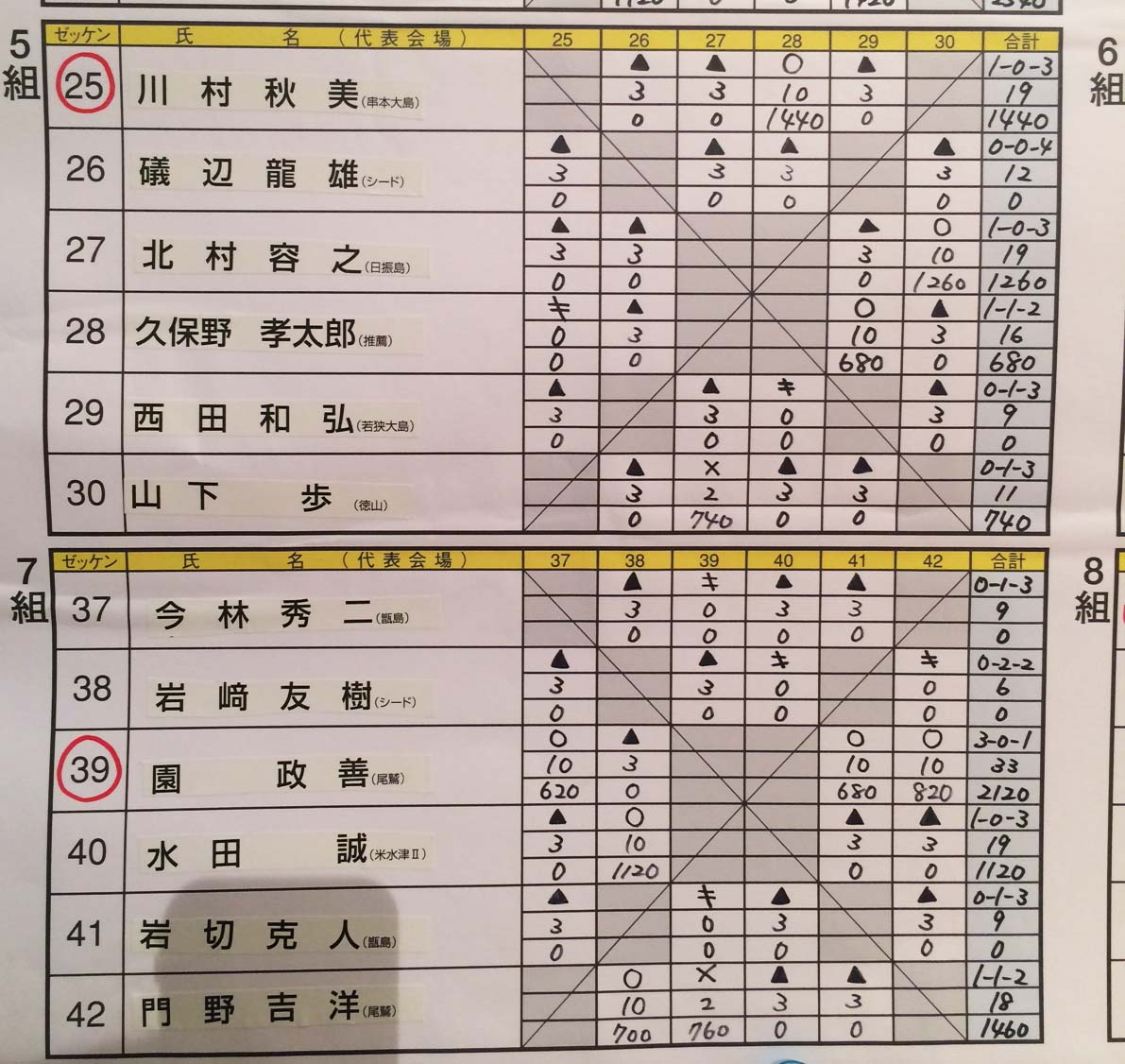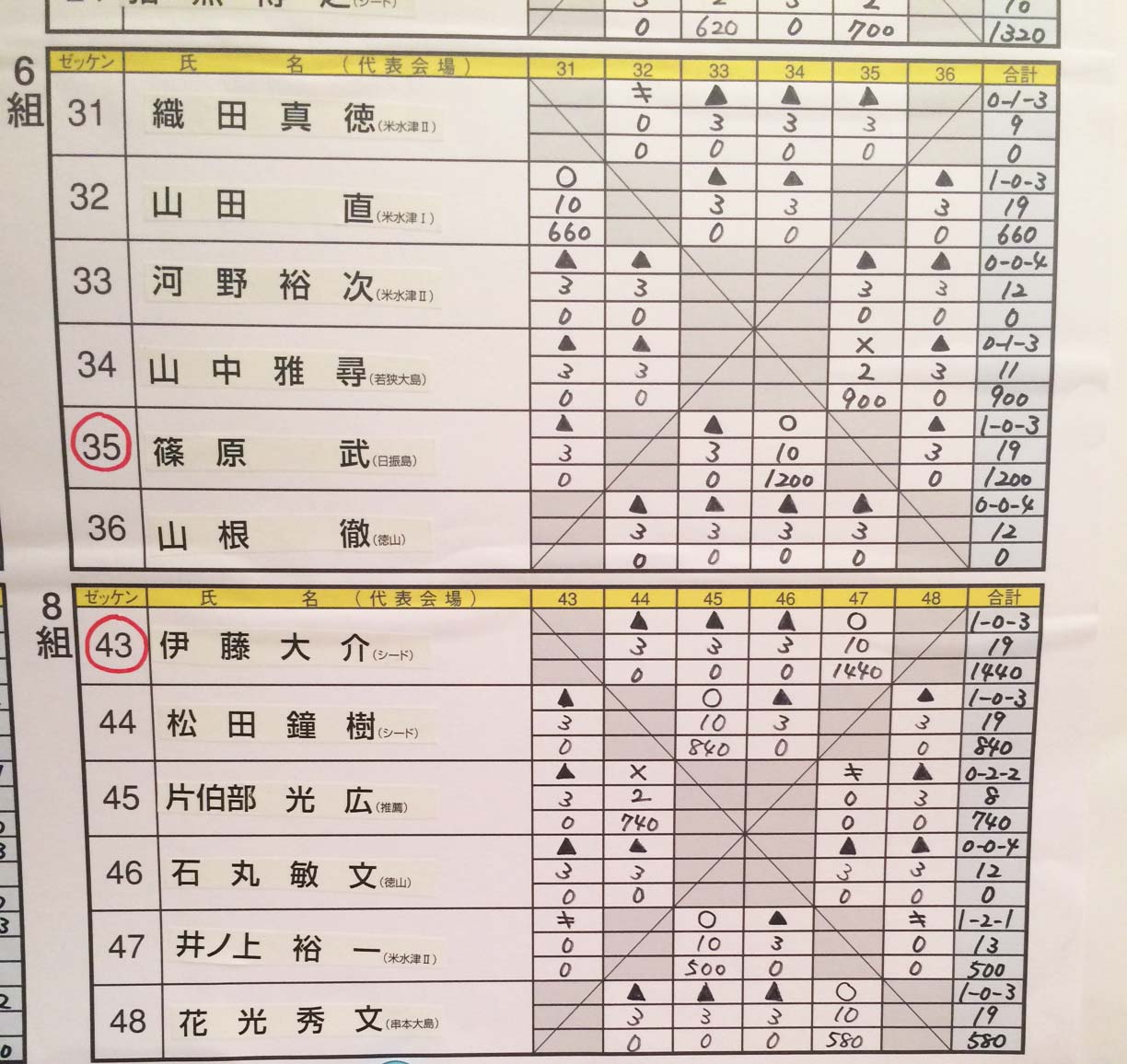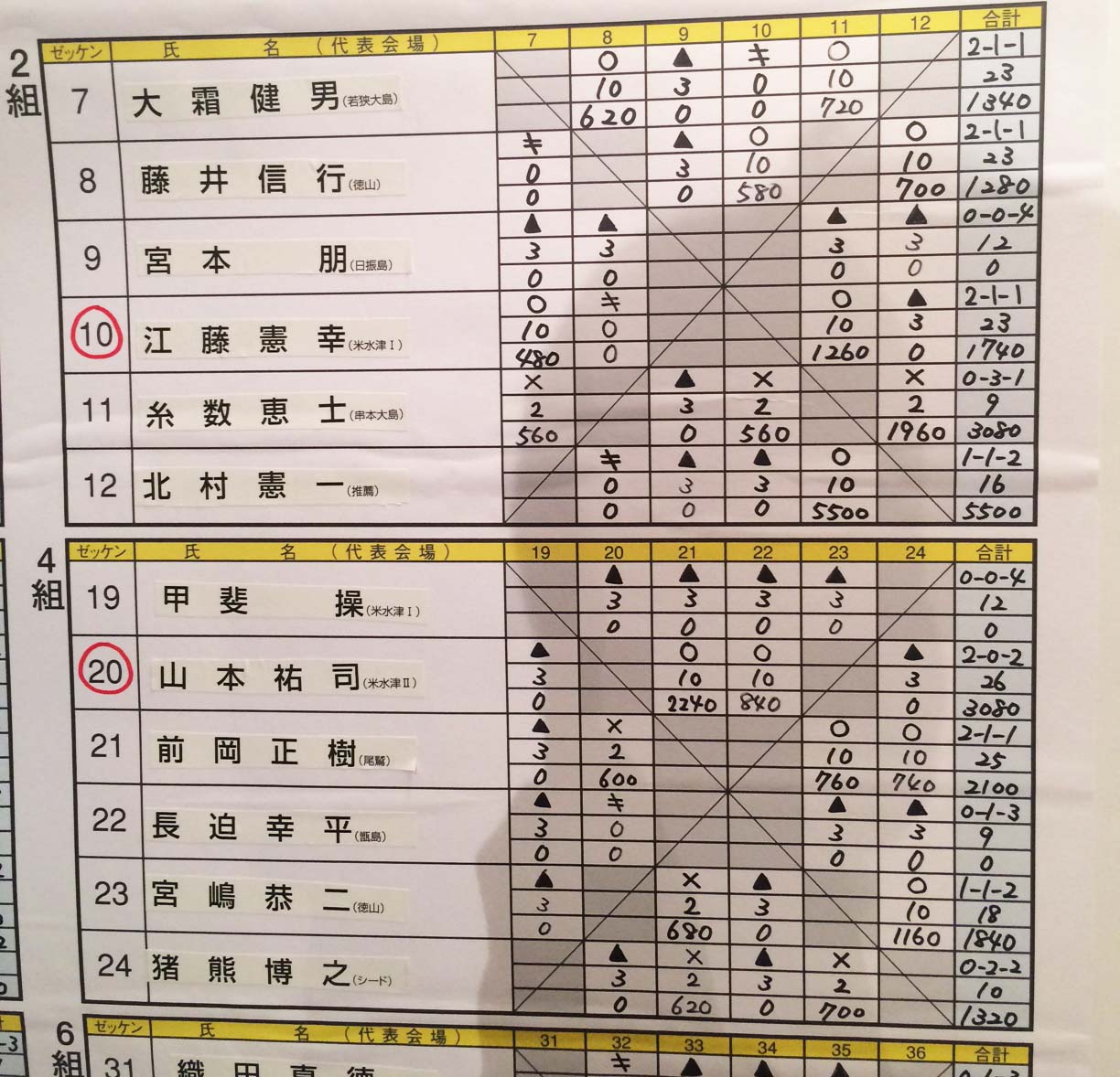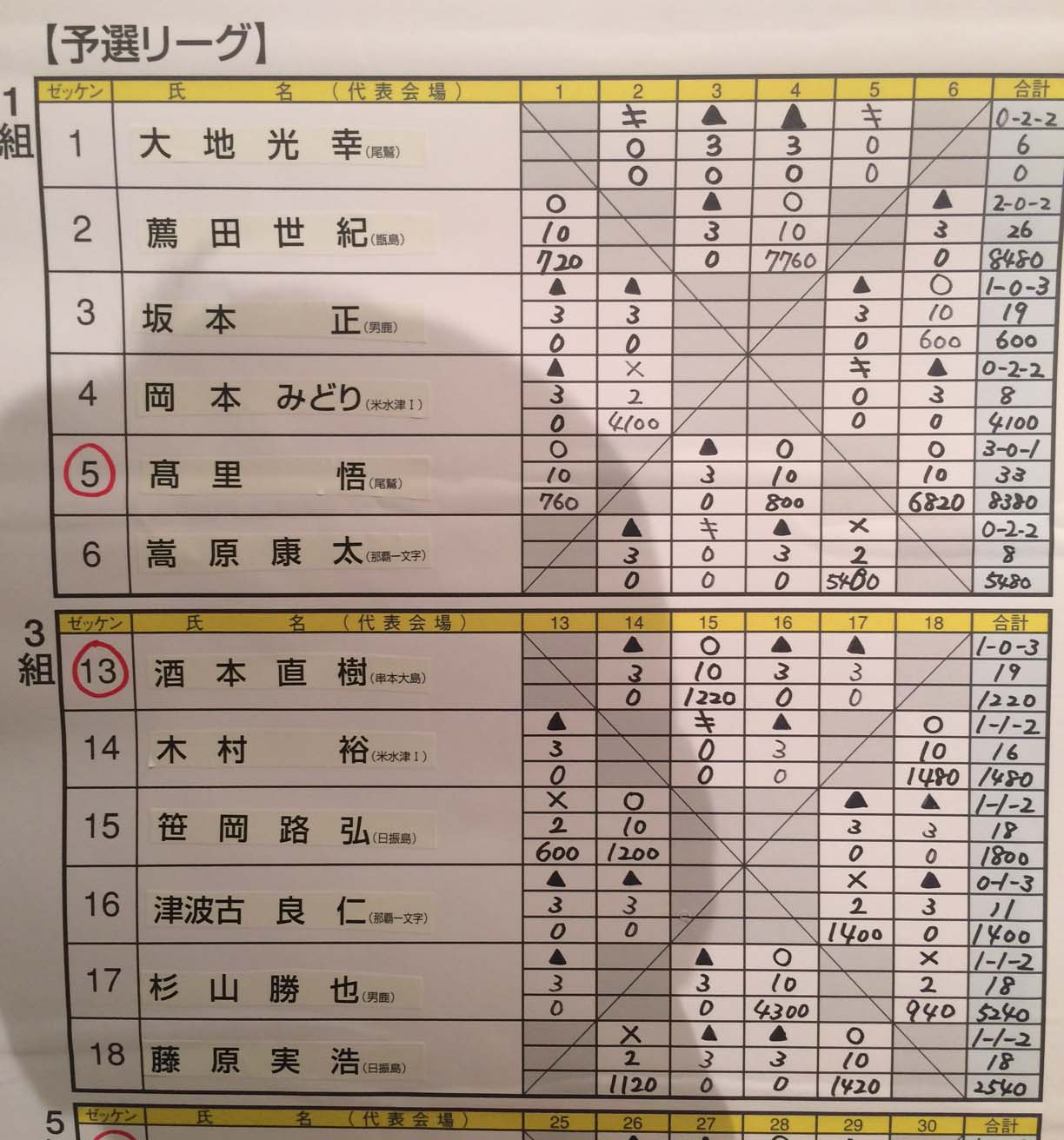 決勝リーグ4人✕2組での3試合の結果は・・・