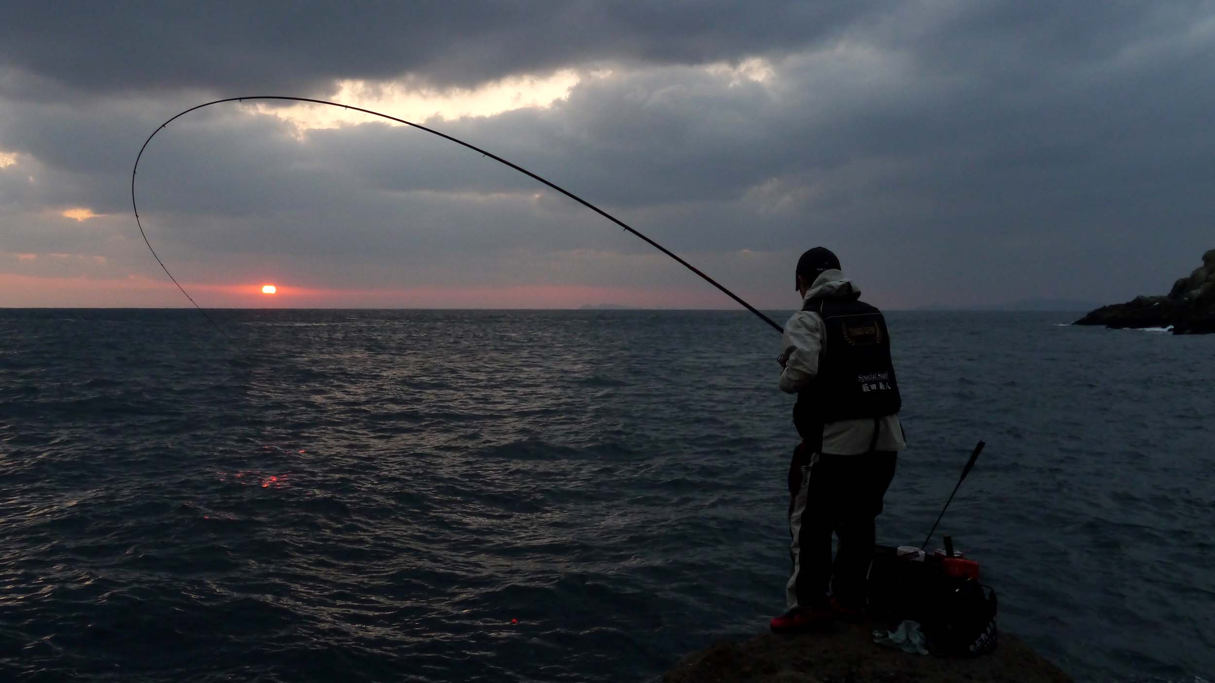 チヌ竿を曲げる時の一つに投入操作がありますが、これは竿の胴にウキの重さを載せて振り込む事が大事。もう一つの竿曲げは、魚の引きに対してですが、これも竿の胴で受け止める竿捌きが重要なのです。