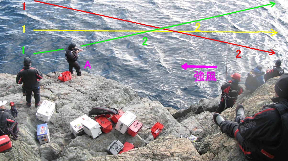・・・腕の良い人はガン玉を打たなくても“2”のポイントを更に潮下側にする事が出来ます。悪条件では経験の差が出やすいのです。