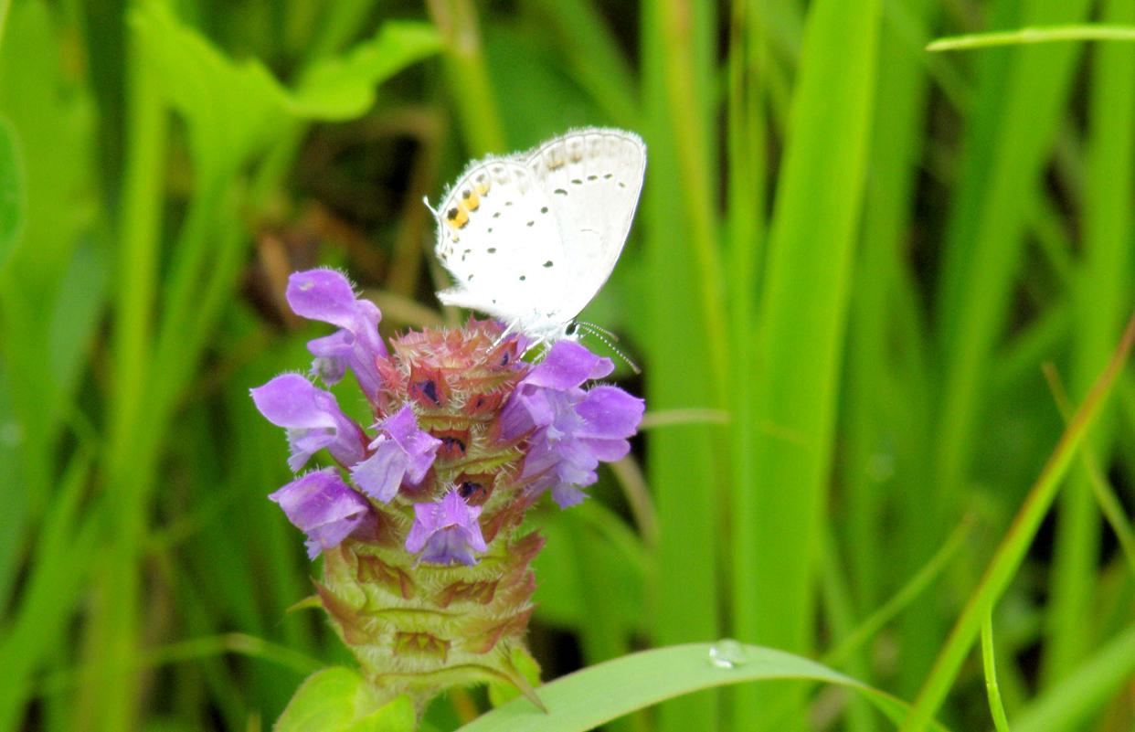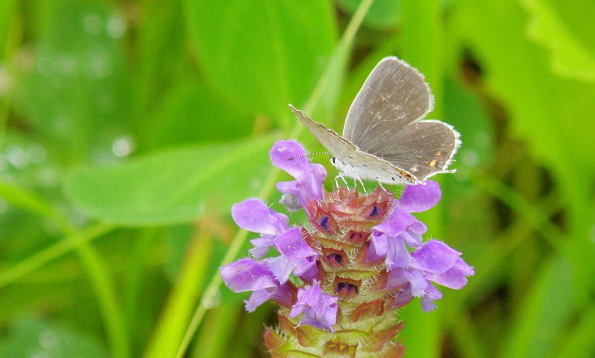 この蝶々はヒメジオンにはあまり行きません。ウツボグサの蜜を盛んに吸っていました。こちらの方がベニシジミより少し大きくて、羽根の表と裏の色彩が極点に違います。