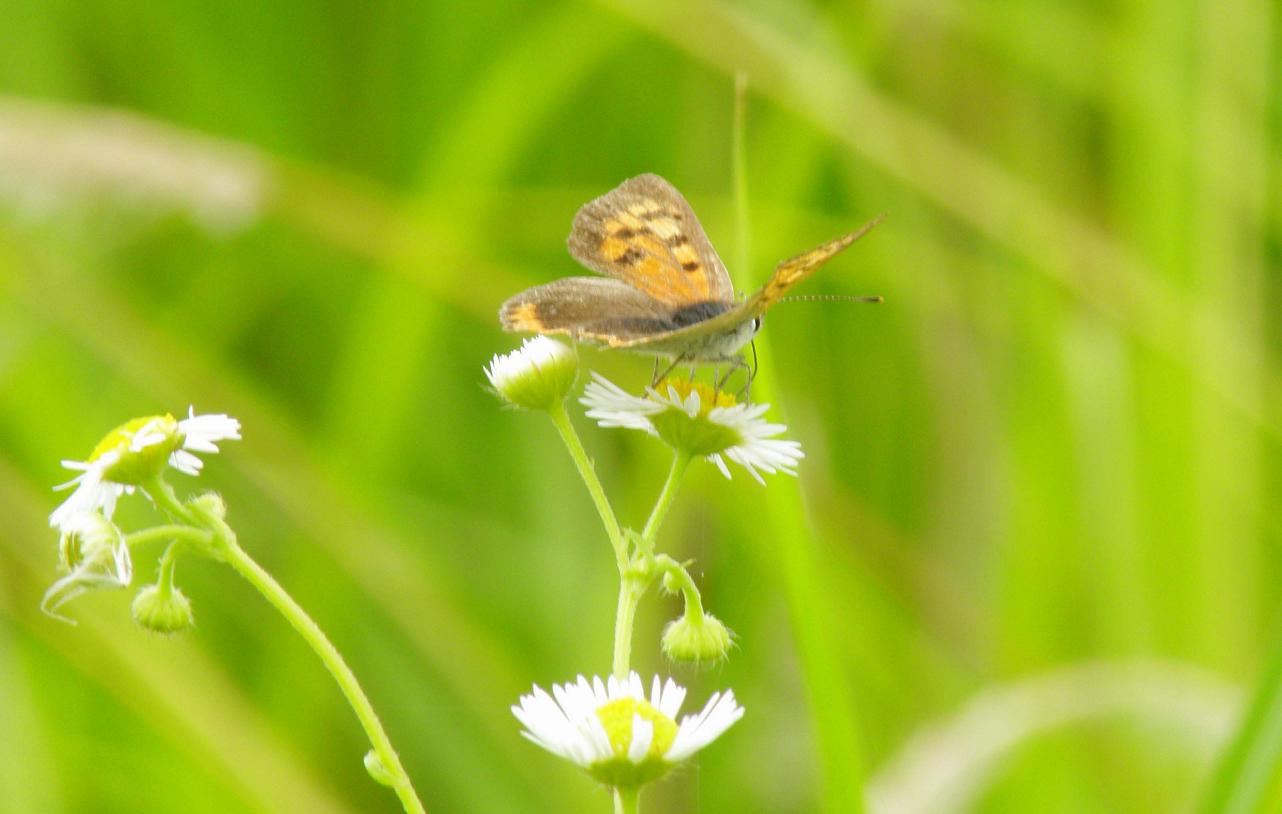 シジミ蝶の仲間で、一番眼にするのがベニシジミ。ヒメジオンの花の蜜ばかりを吸っているけど、好みなのでしょうか?