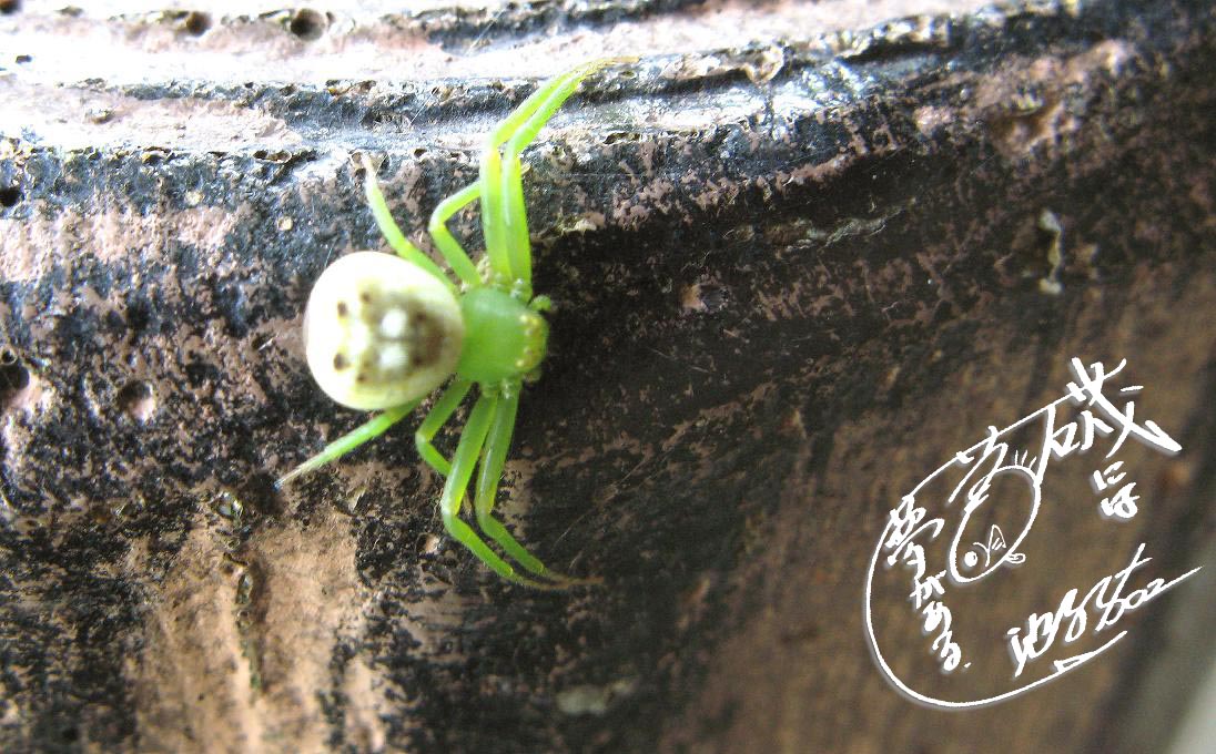 小さな蜘蛛で花の裏などに隠れて、花の蜜を吸いに来た昆虫を捕食する。