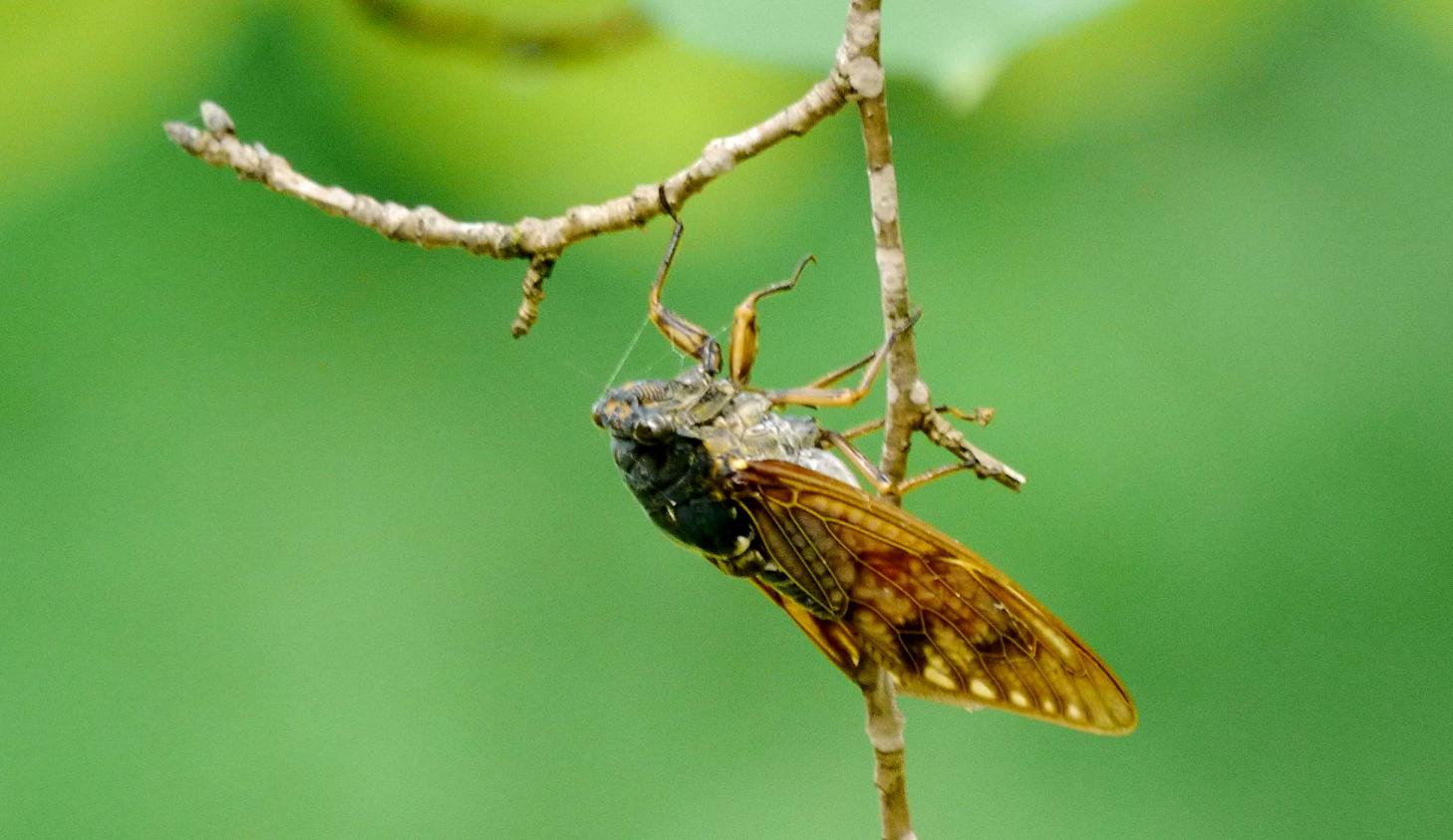 変な所にぶら下がって鳴きまくるアブラゼミ