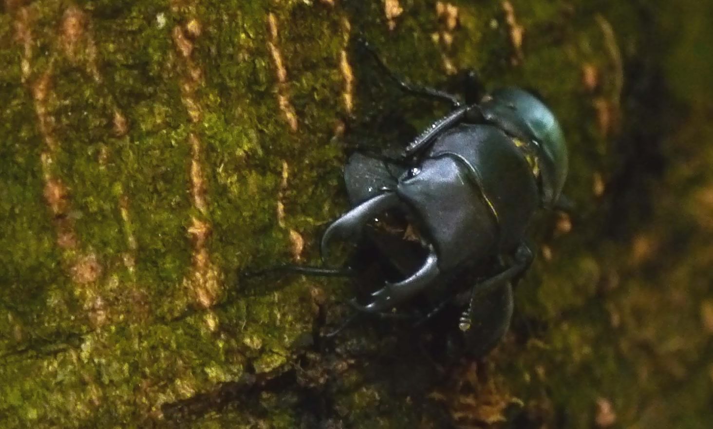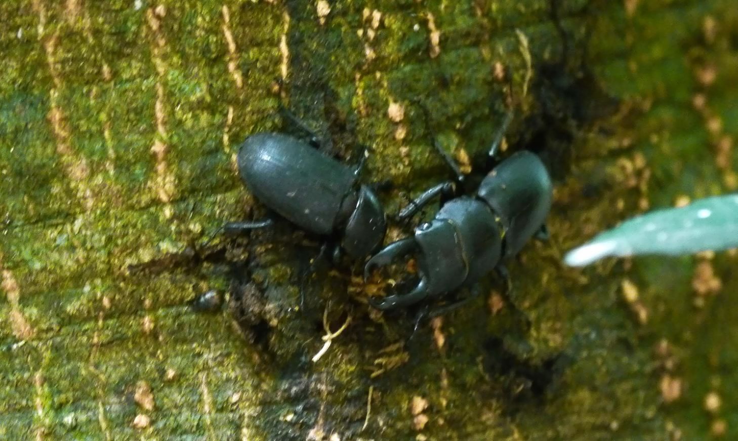 昼間なのですが、樹間では薄暗く4匹のコクワガタが居ました。