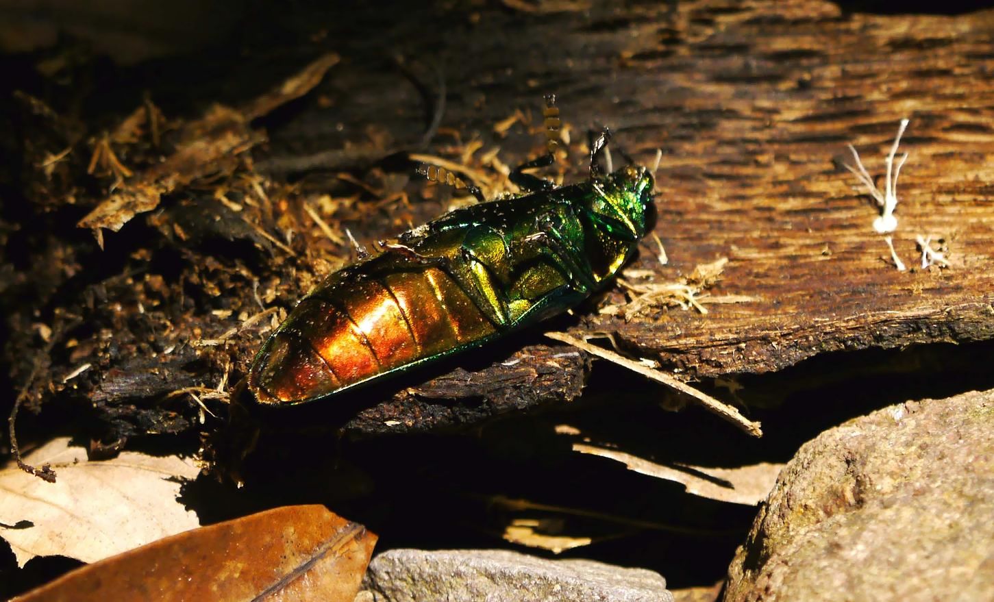 “玉虫色”とは、この虫の色から出た言葉らしい。