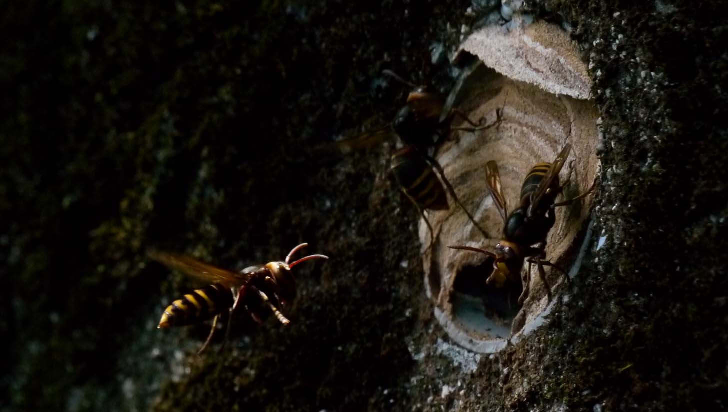 このスズメバチも攻撃性が強く、夜間でも活動するのが特徴